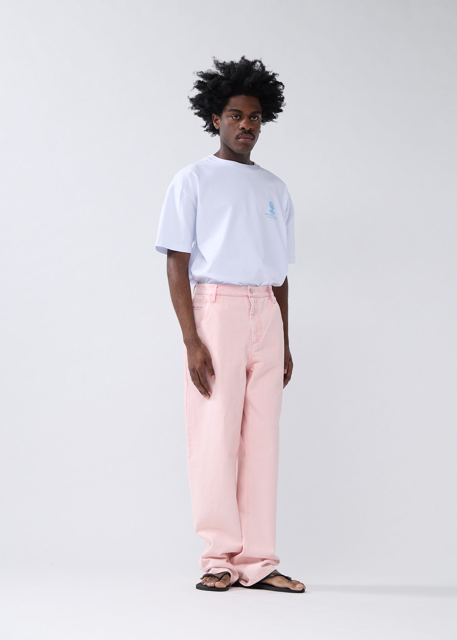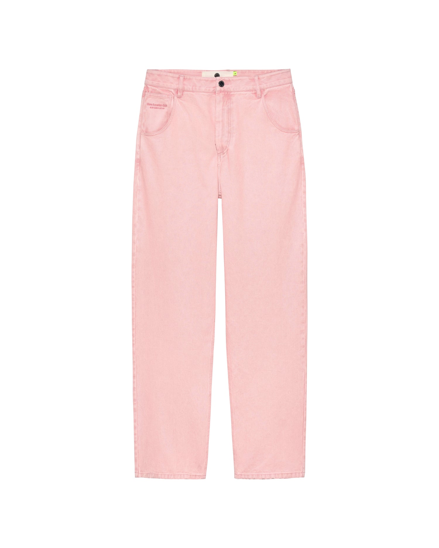 Denim trouser cut to a relaxed fit with a mid waist and a straight leg. The garment has a fixed waistband and is available in two lenghts. Detailed with a metal branded button, and New Amsterdam name embroidery above the left pocket. These pants are made out of a cotton denim.