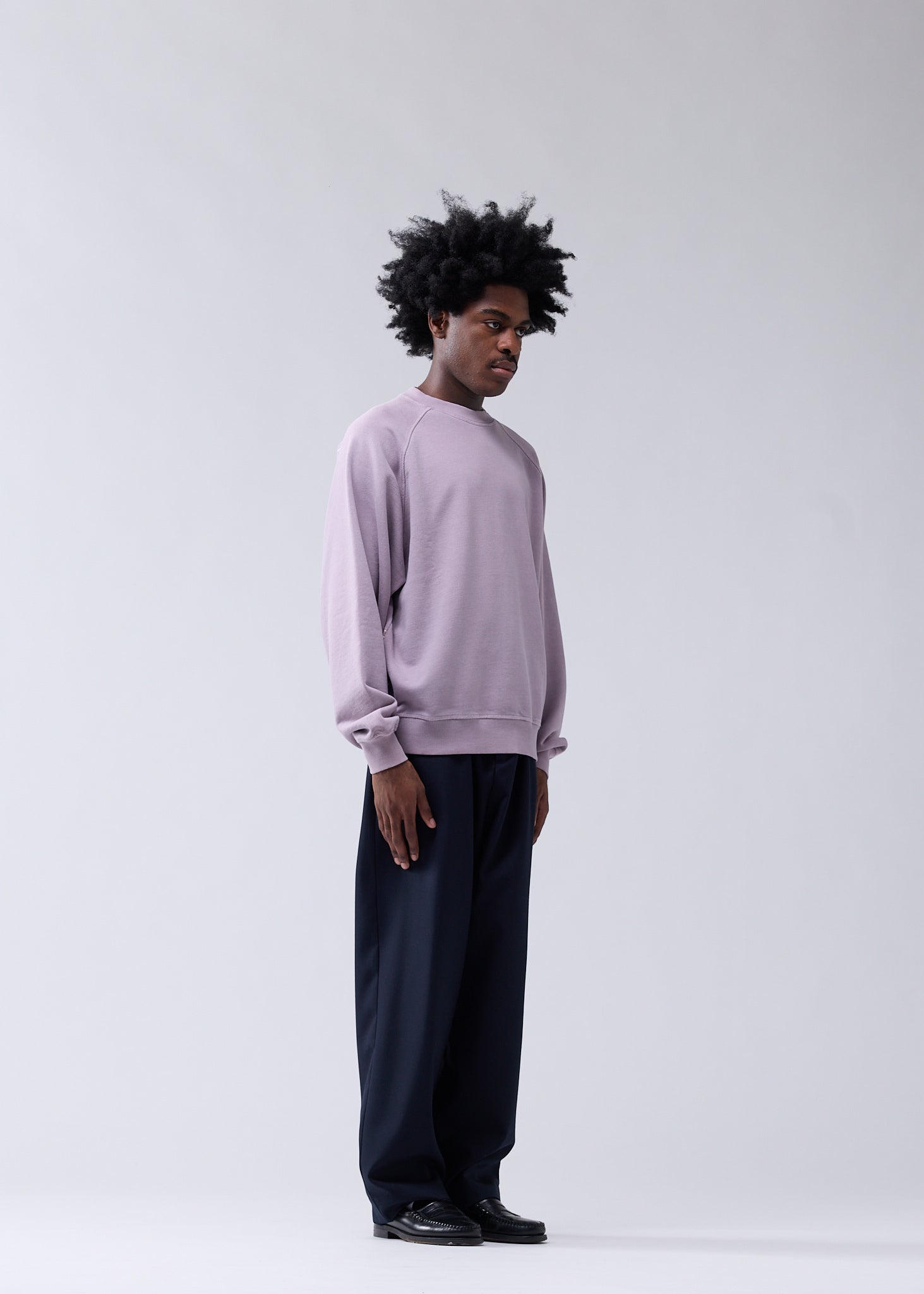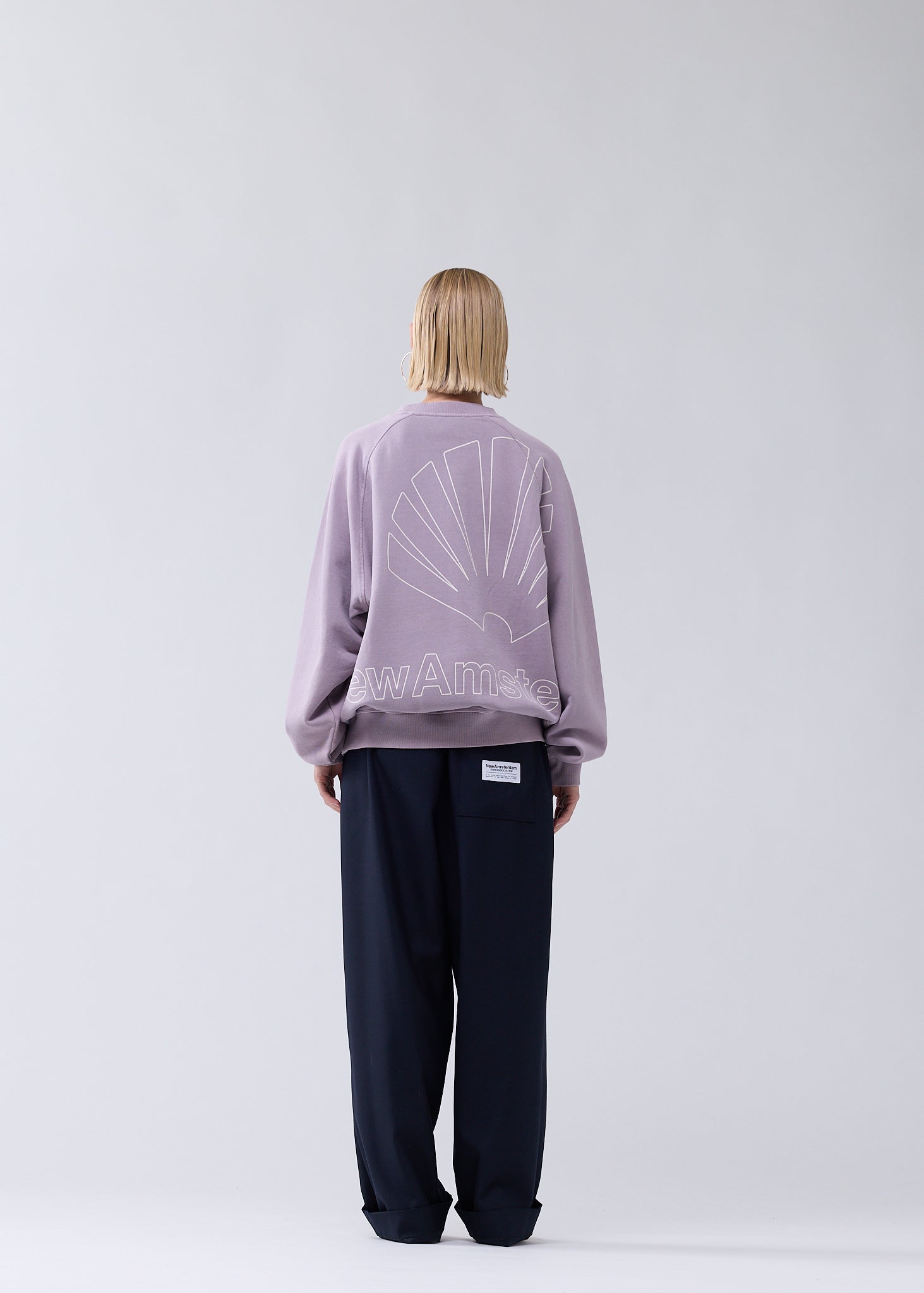 Raglan crew neck sweater cut to a relaxed unisex fit. Detailed with the New Amsterdam logo and name outline print on the back. This crewneck is made of a heavy weight 455 GSM pigment dyed cotton terry.