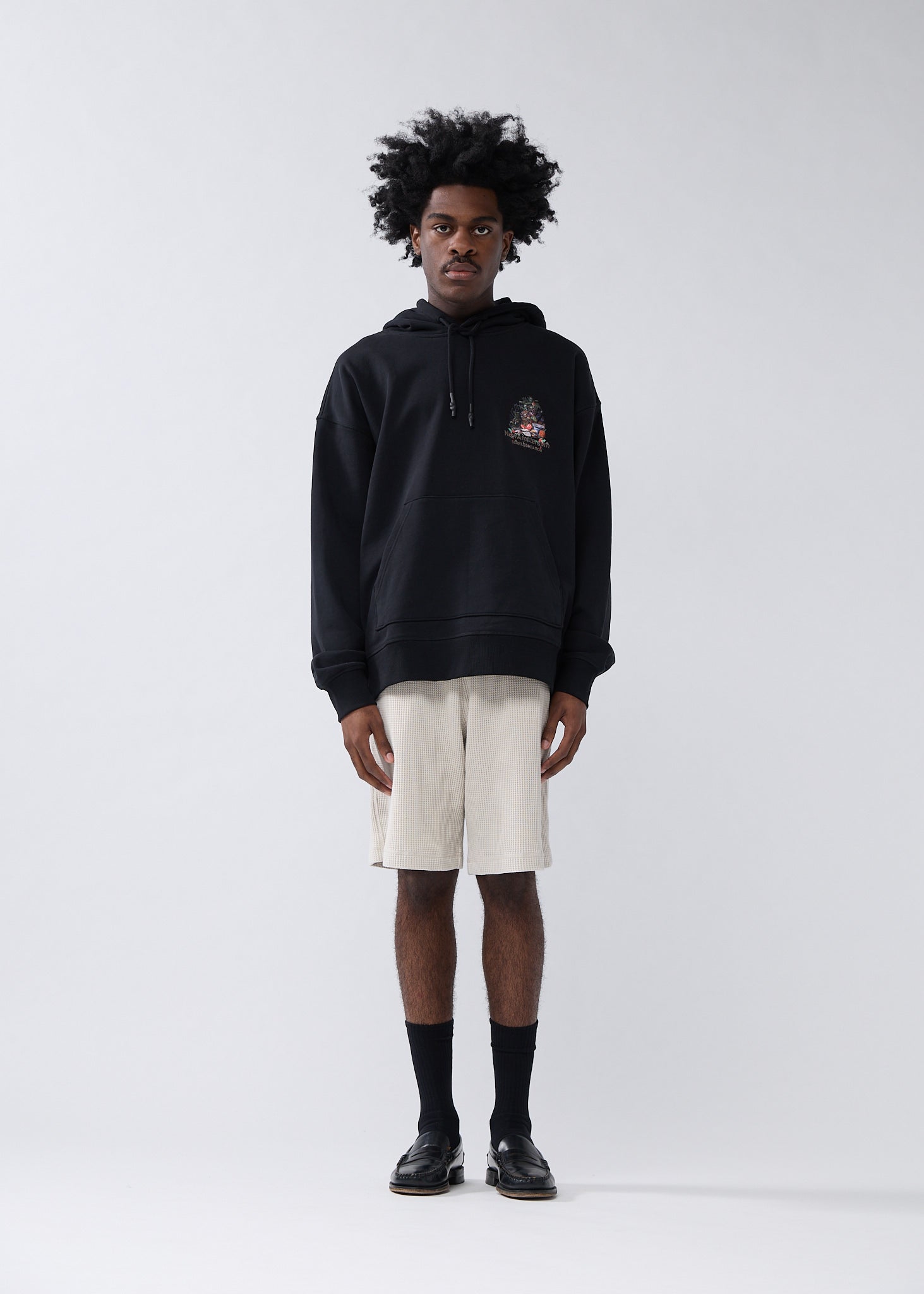 Hooded sweater, cut to a relaxed unisex fit. Detailed with the seasonal 'Buffet' artwork, created using a unique technique where the entire artwork is first embroidered and then printed over. This hoodie is made out of a 455 GMS cotton.