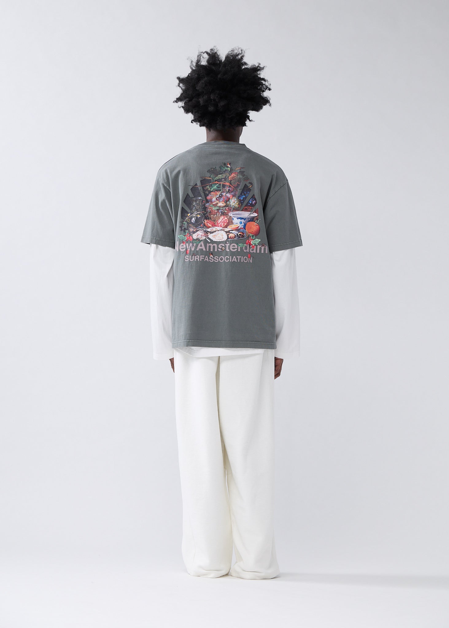 Crew neck t-shirt, cut to a regular unisex fit. Detailed with seasonal branded 'Buffet' artwork, digitally printed on the front and back. Made from 240 GSM fabric-dyed cotton.