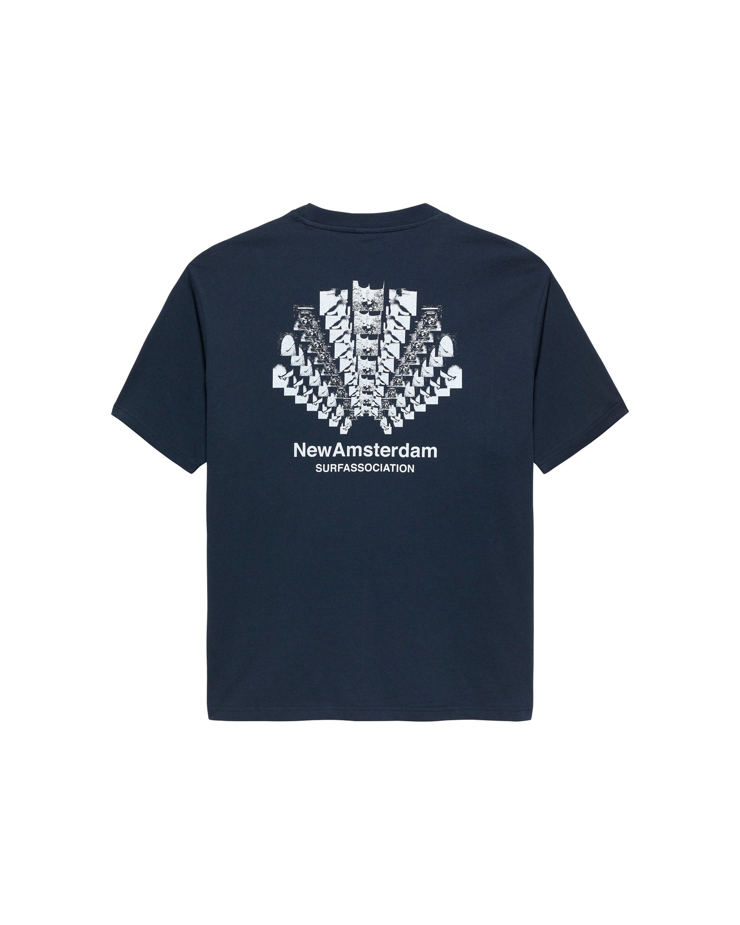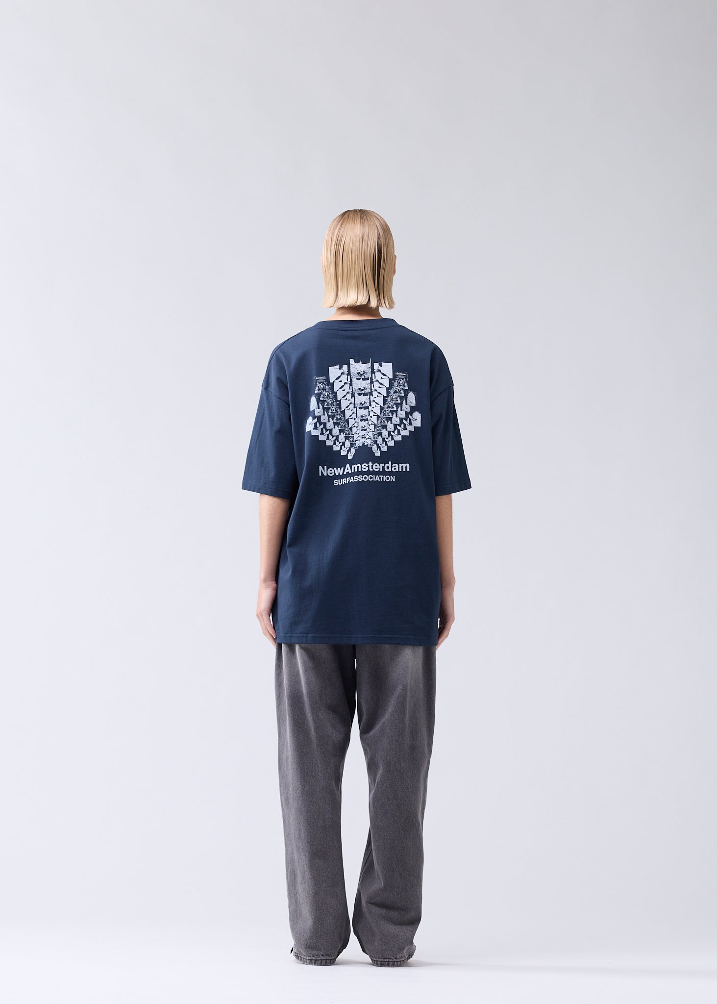 Crew neck t-shirt, cut to a regular unisex fit. Features a collage logo artwork on the front and back, made using photos from Wavey Zine. Printed with a screen print technique. Made from 240 GSM fabric-dyed cotton.