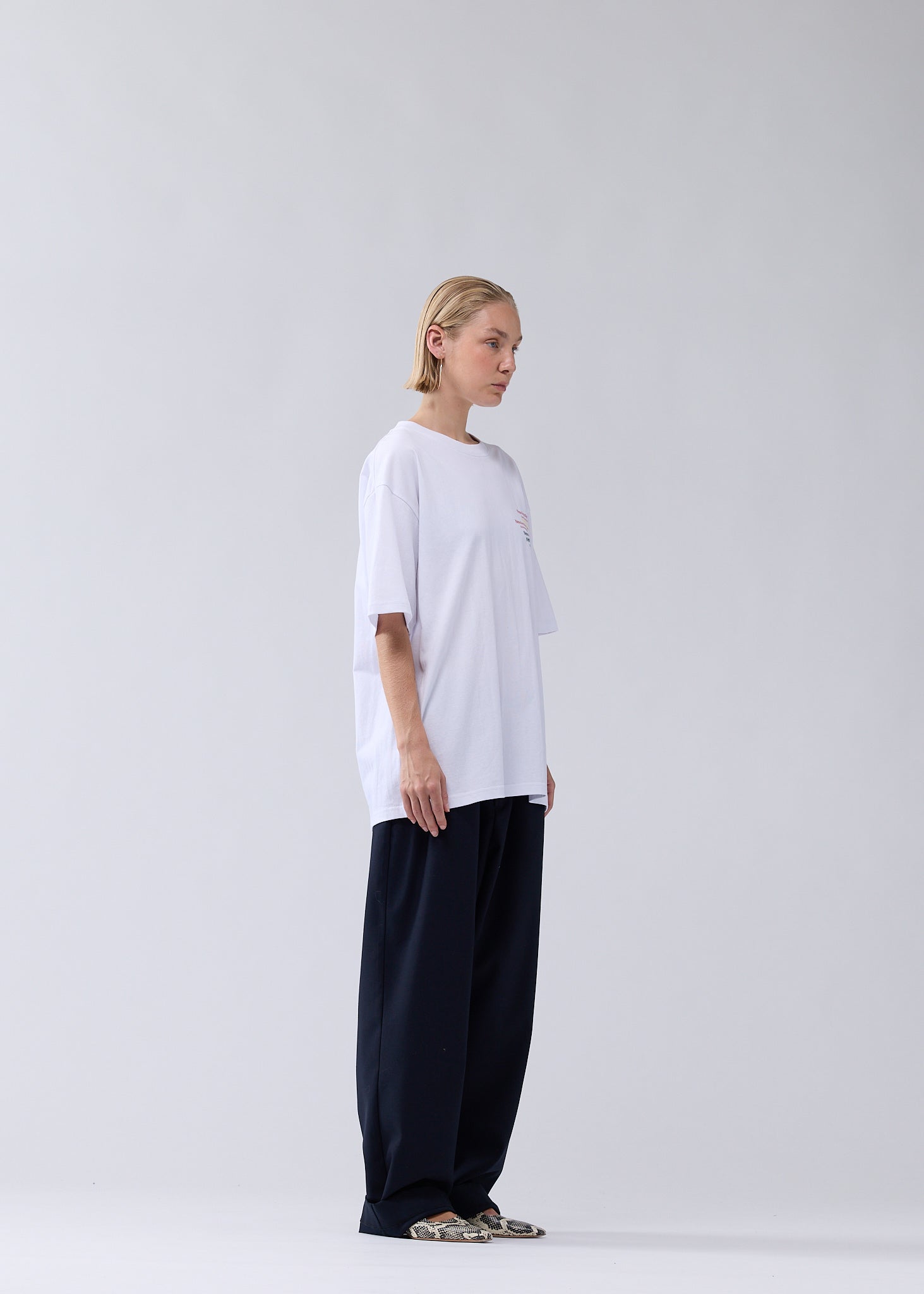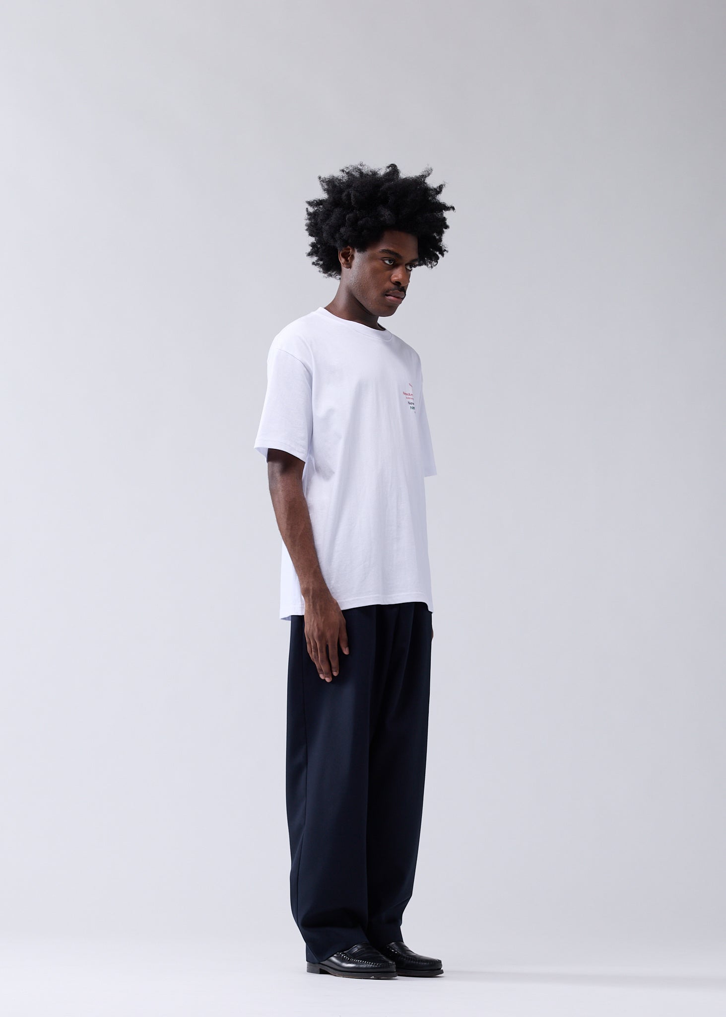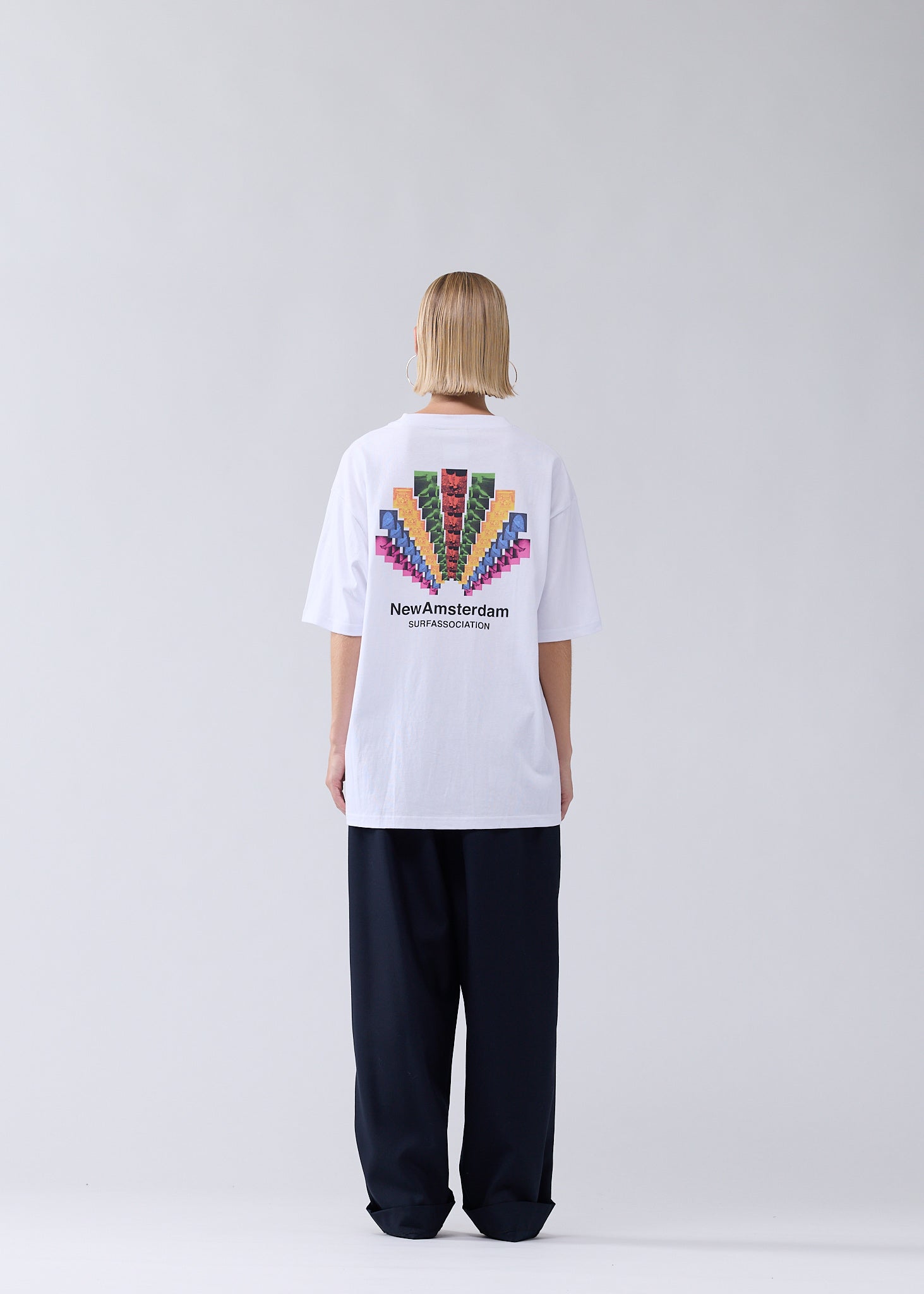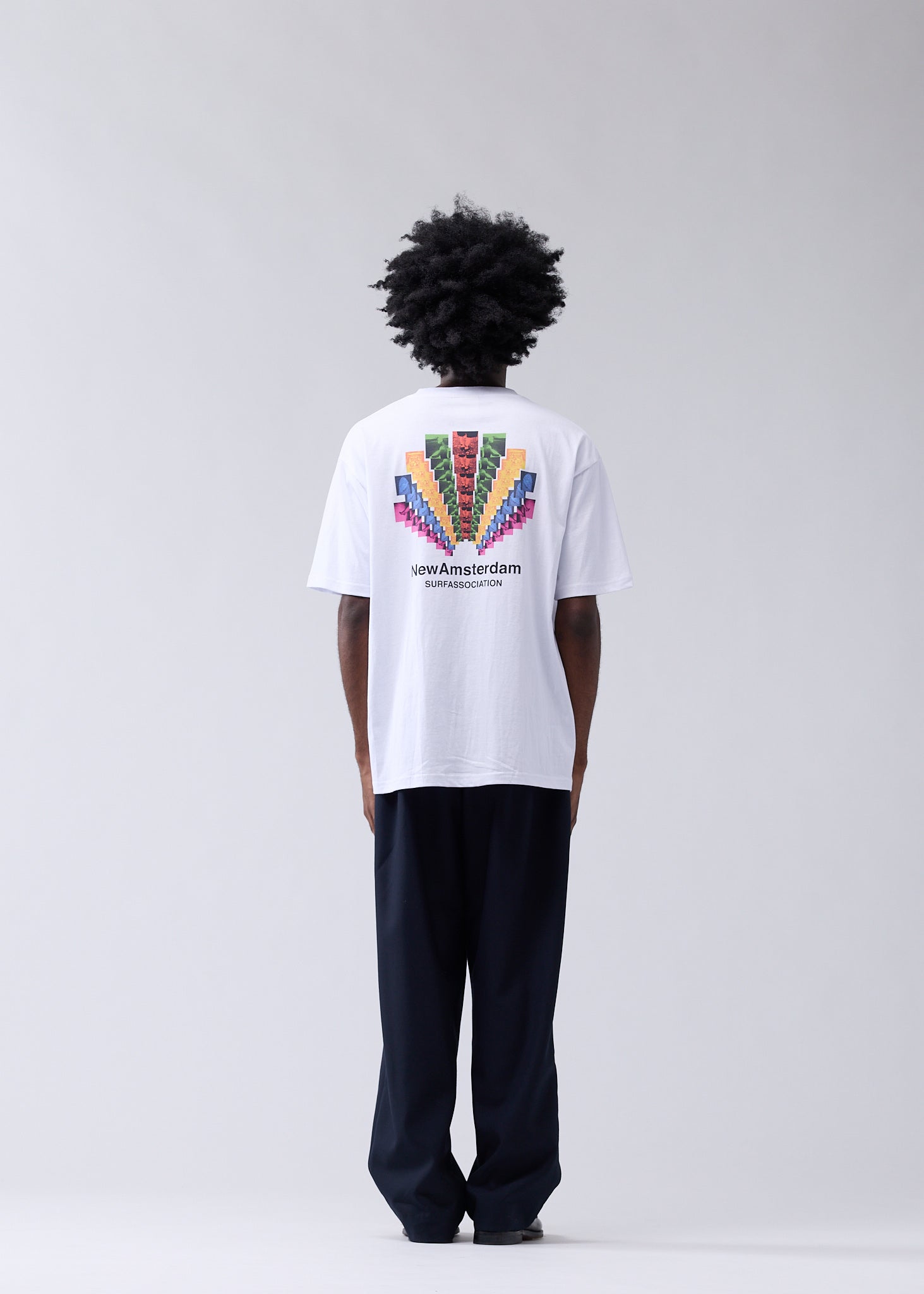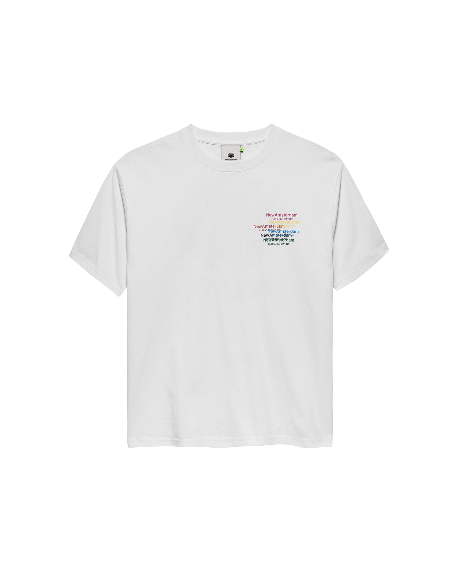 Crew neck t-shirt, cut to a regular unisex fit. Features a collage logo artwork on the front and back, made using photos from Wavey Zine. Printed with a screen print technique. Made from 240 GSM fabric-dyed cotton.