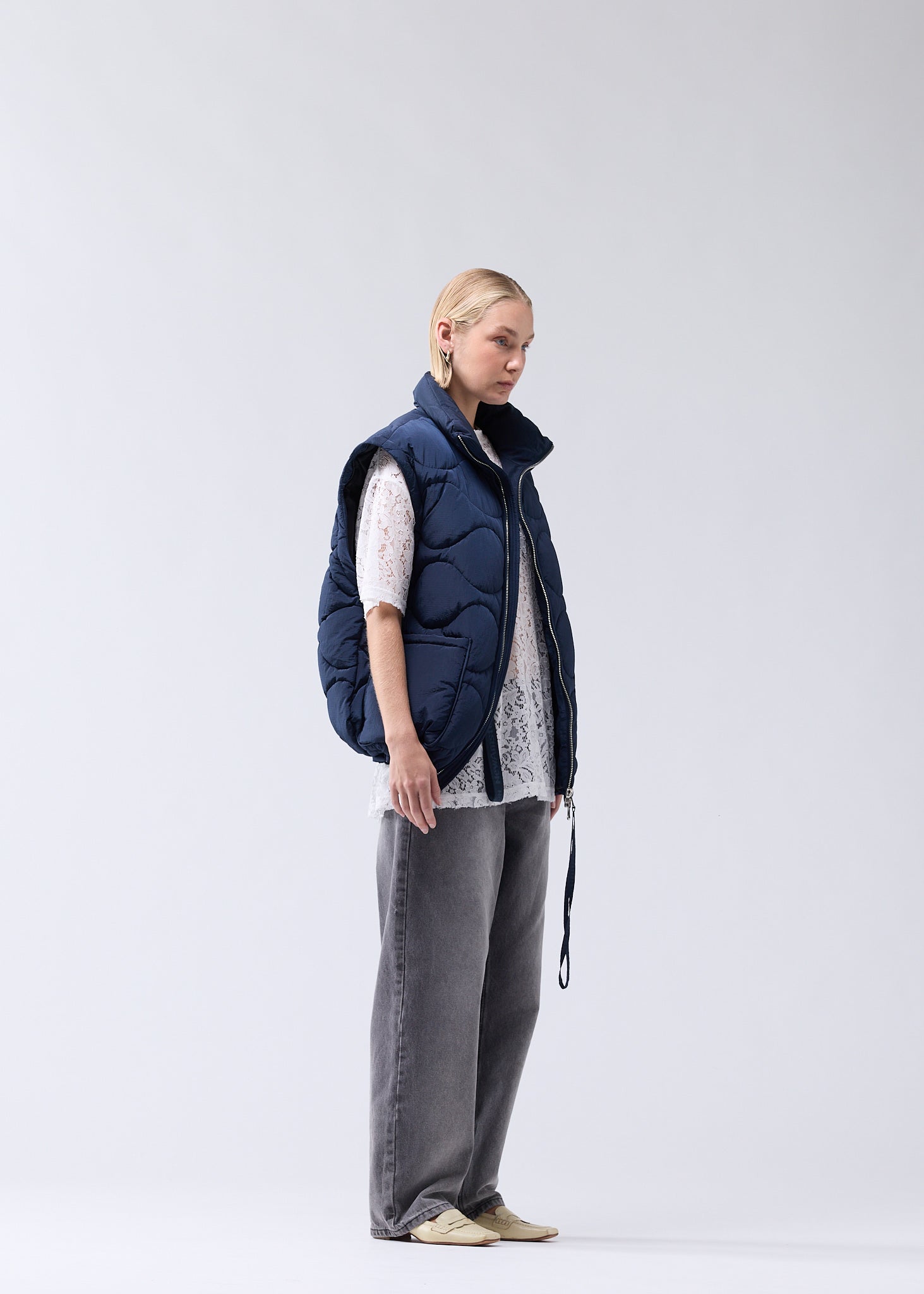 Designed with detachable sleeves, a metal double zipper, patch pockets, and branded cordstoppers, this jacket easily adapts from city wear to outdoor use. Branded front and back with the New Amsterdam logo, it’s a bold and functional statement jacket.