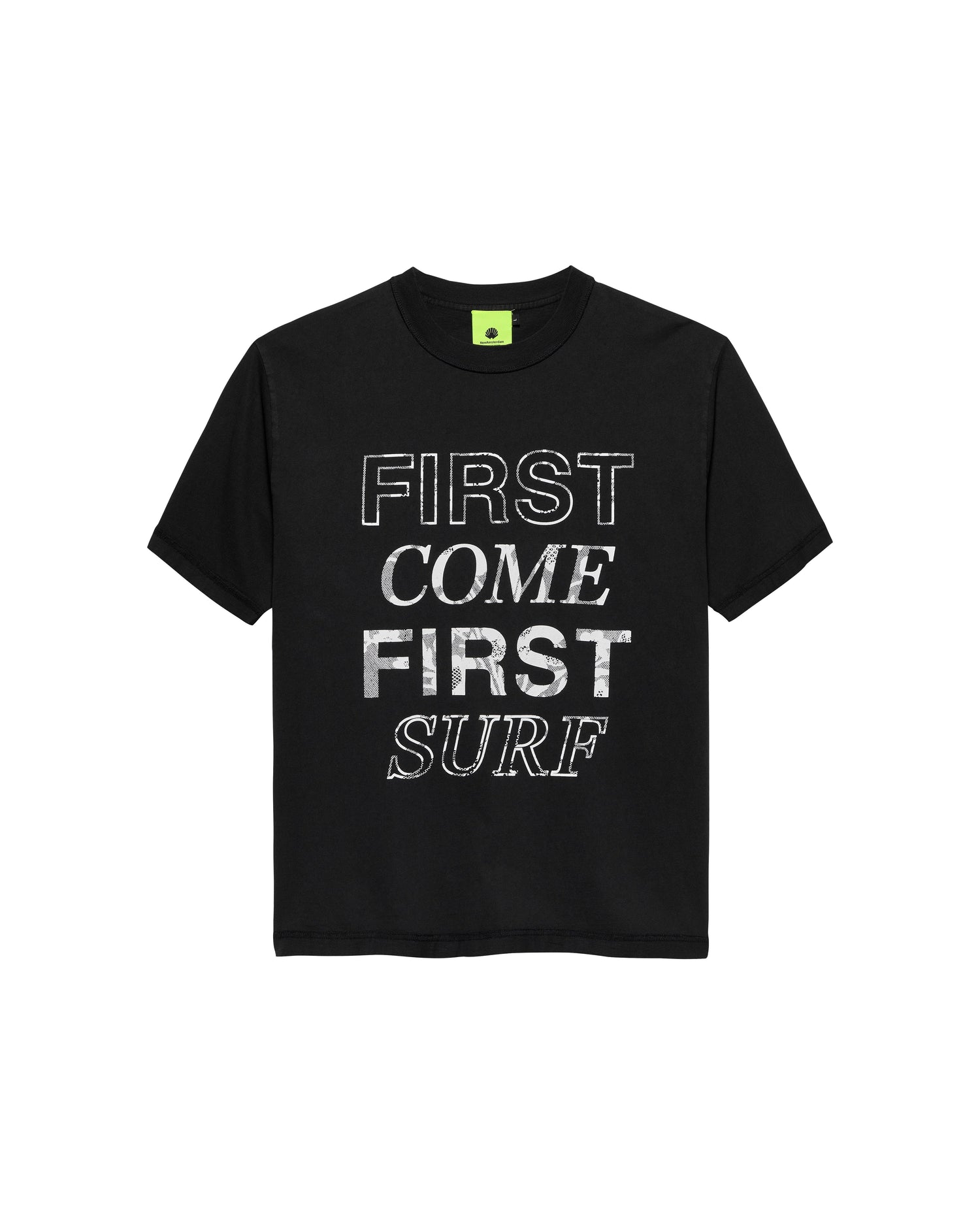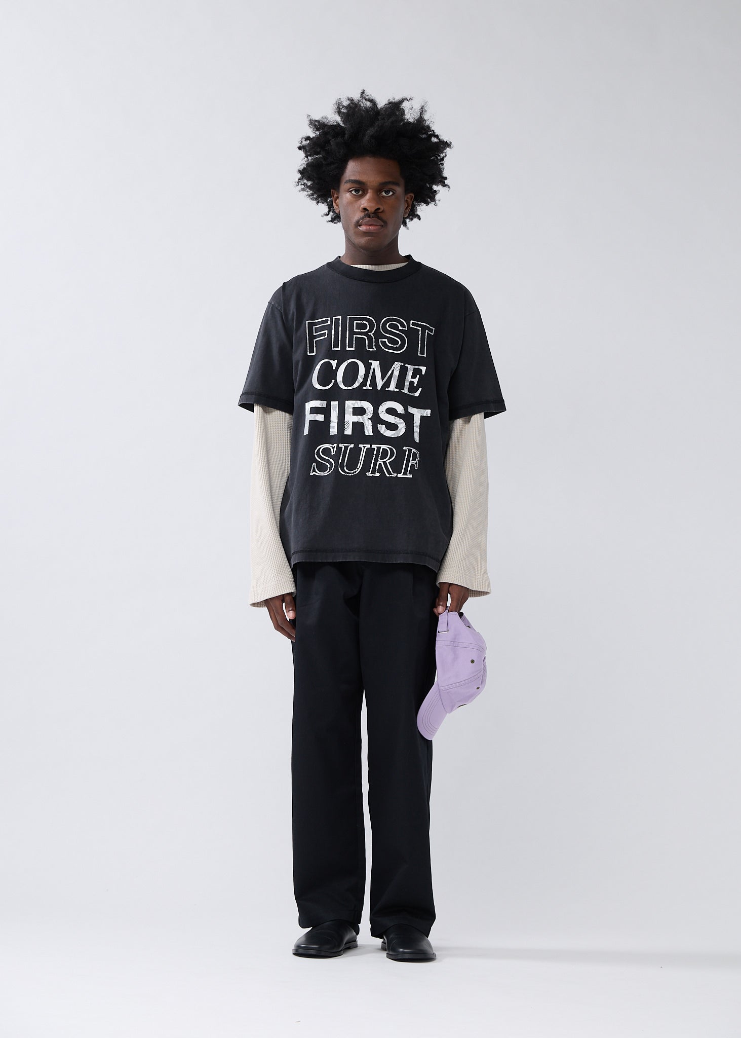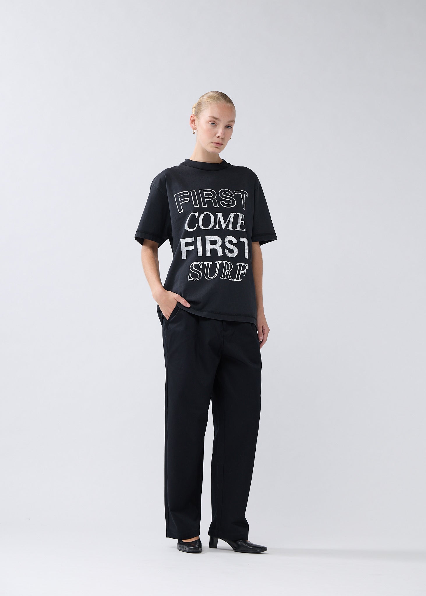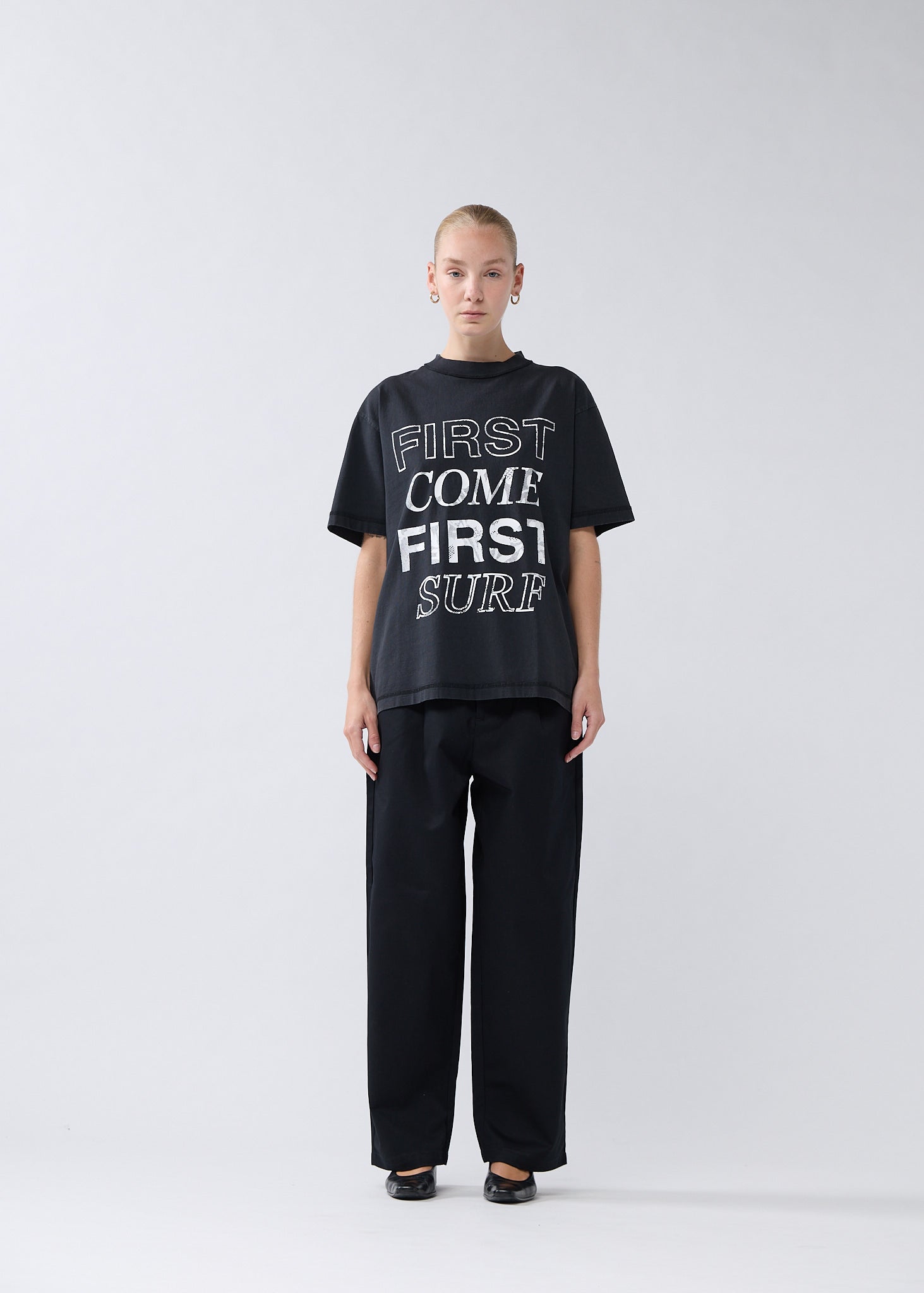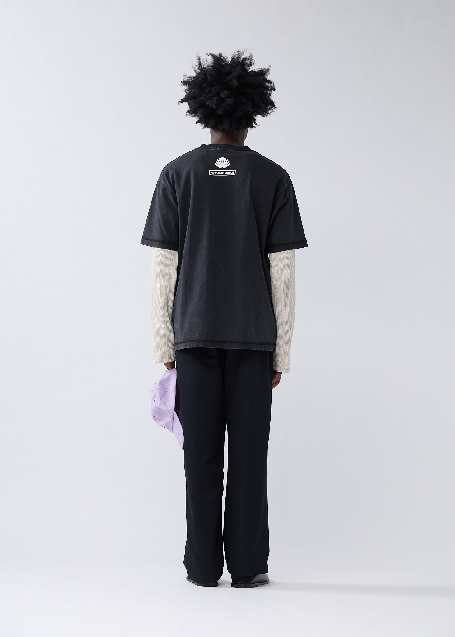 Crew neck t-shirt, cut to a regular unisex fit. Detailed with a seasonal text screen print on the front and logo on the back. This tee is made of a 240 GSM garment dyed and snow washed cotton.