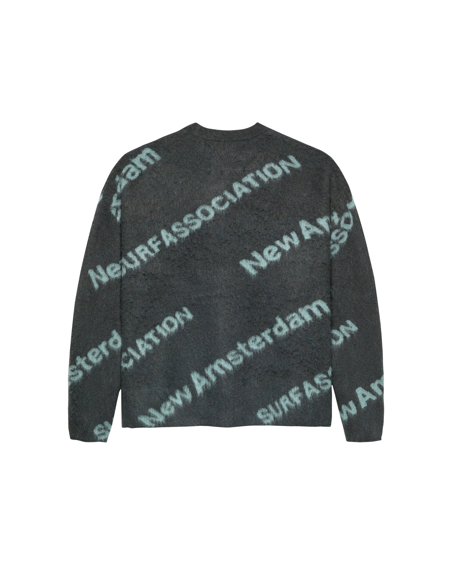 The Jacquard Knit Charcoal/Mint by New Amsterdam Surf Association is a unisex crewneck sweater with an all-over jacquard logo design. Made from a soft blend of 10% wool, 35% nylon, and 55% anti-pilling acrylic, it offers warmth, comfort, and long-lasting durability. The relaxed fit and bold branding make it a versatile piece for both city streetwear and casual coastal style.