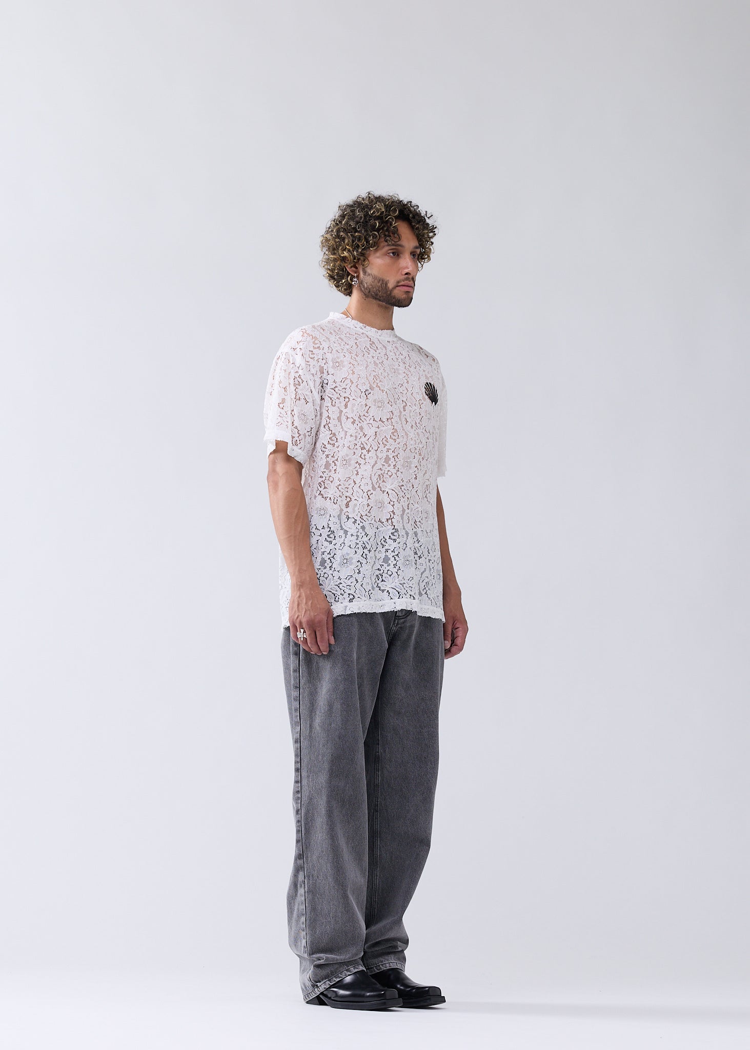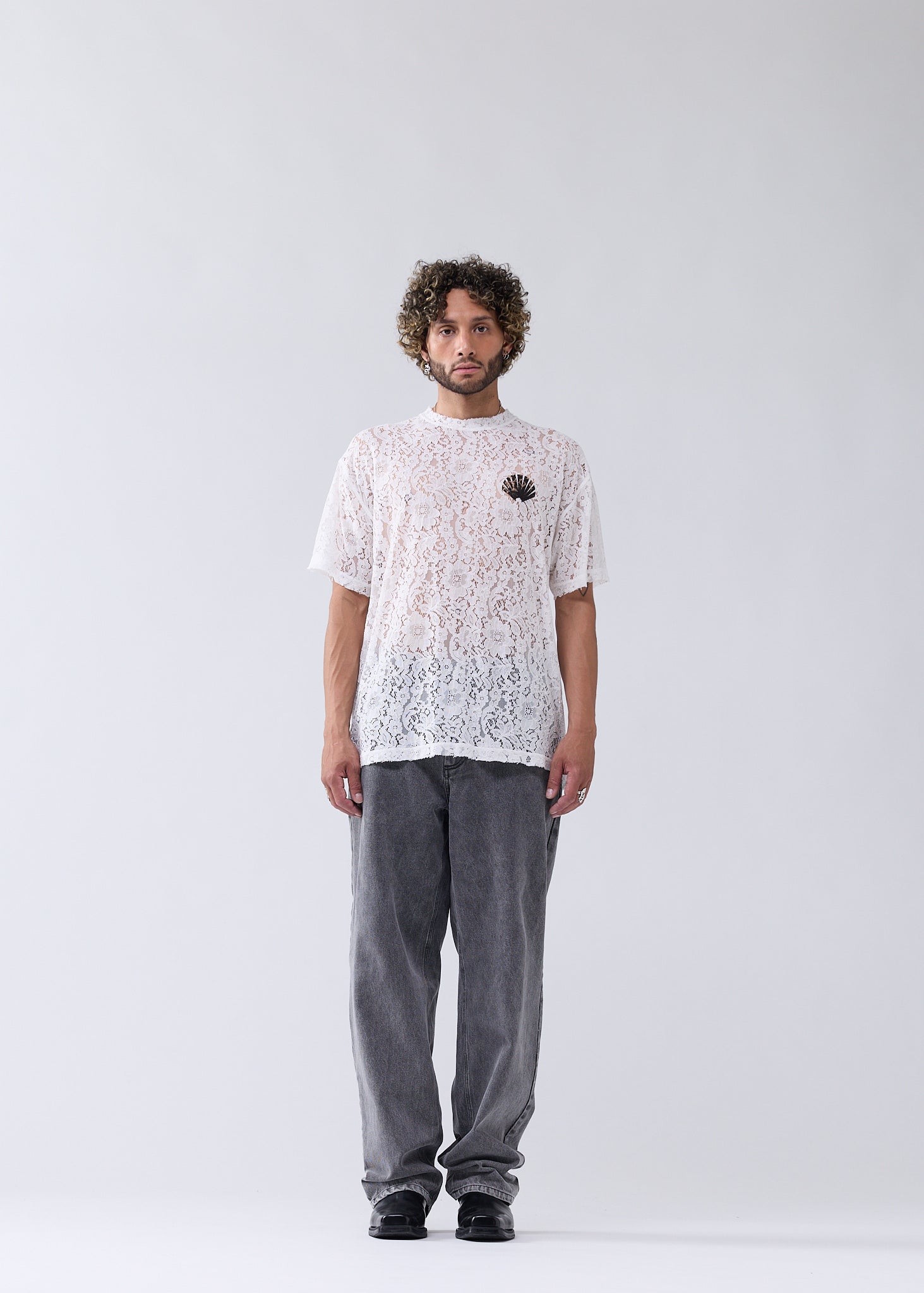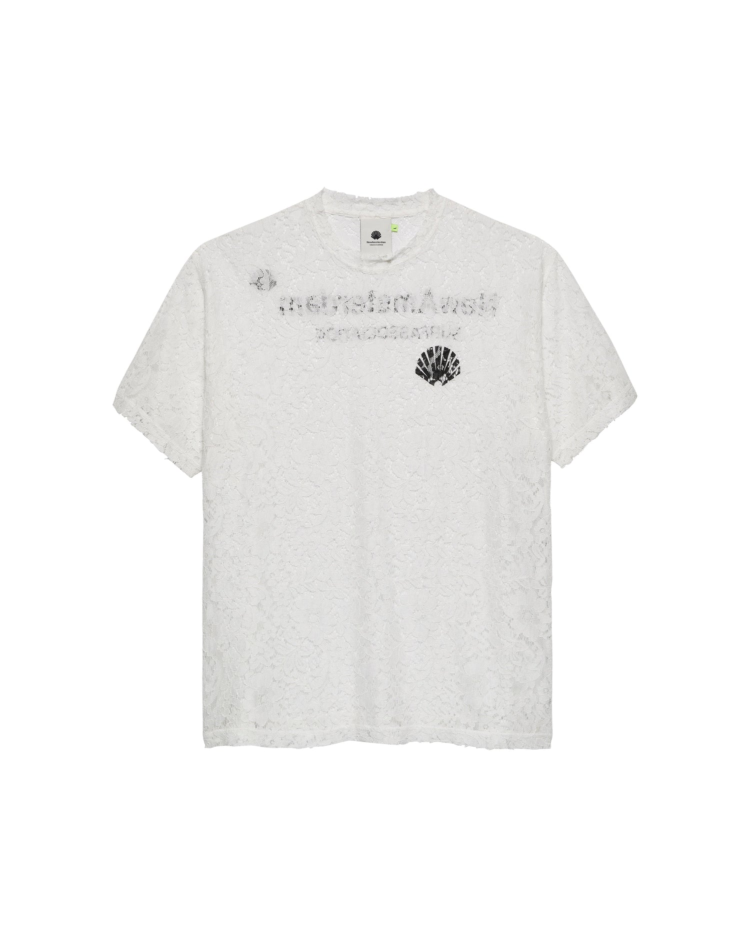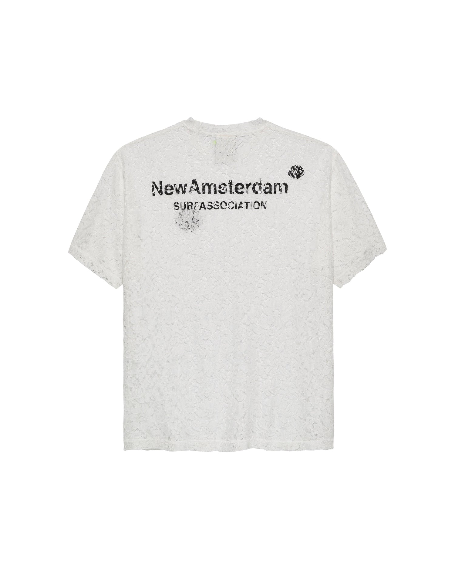 Crew neck lace t-shirt, cut to a regular unisex fit. Detailed with the New Amsterdam logo and name digital print on front and back.