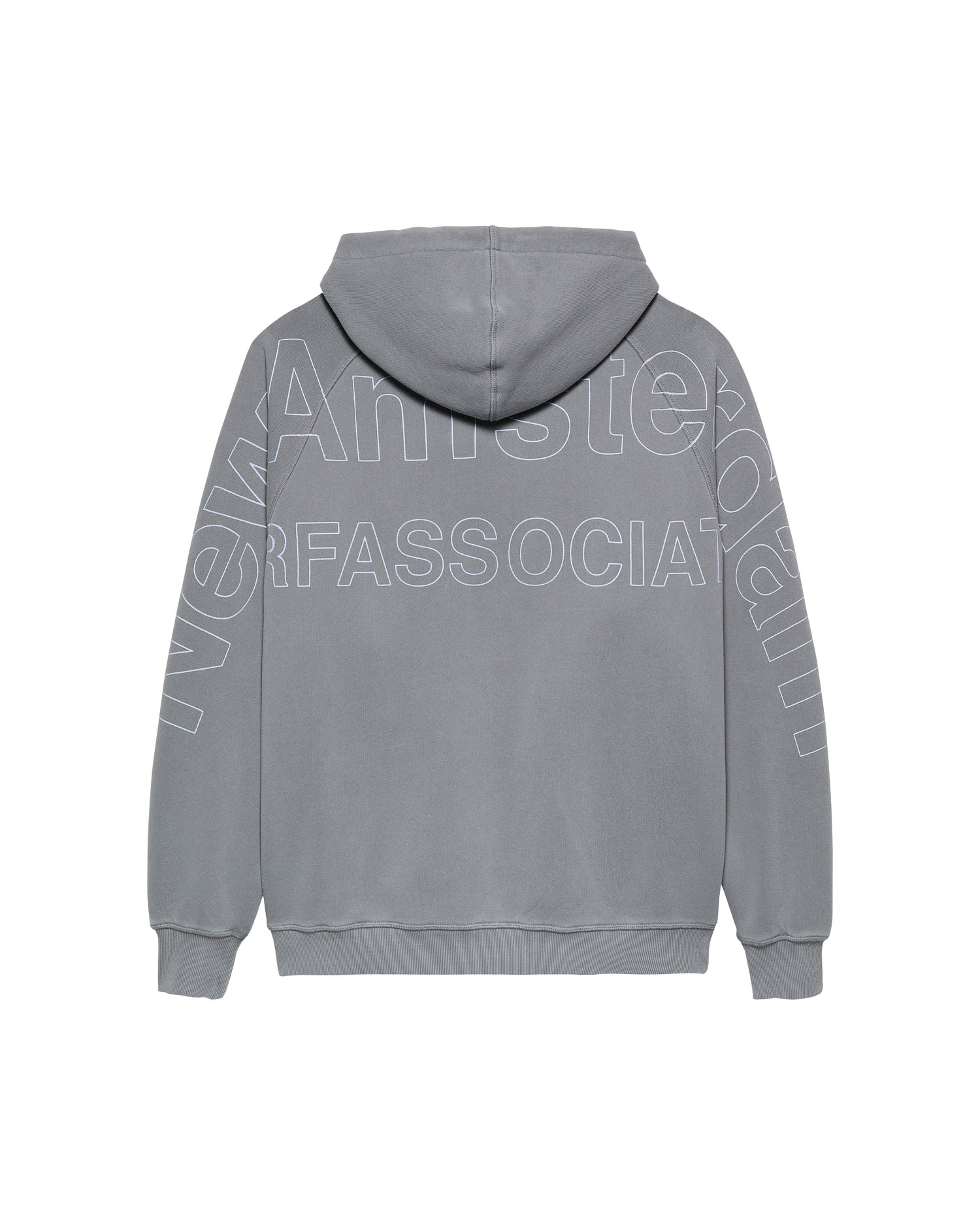Hooded raglan sleeve sweater, cut to a relaxed unisex fit. Detailed with the New Amsterdam name screen printed on the back. This hoodie is made of a heavy weight 455GMS cotton with a garment dye finish.