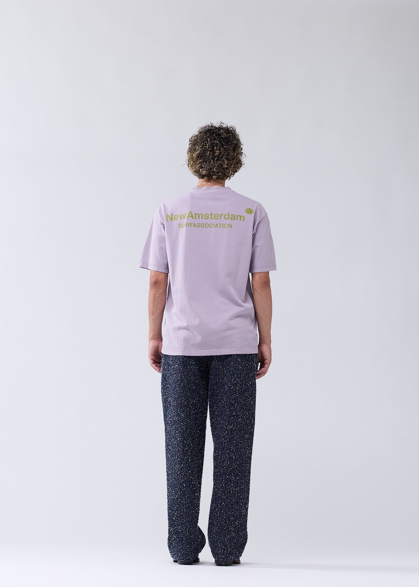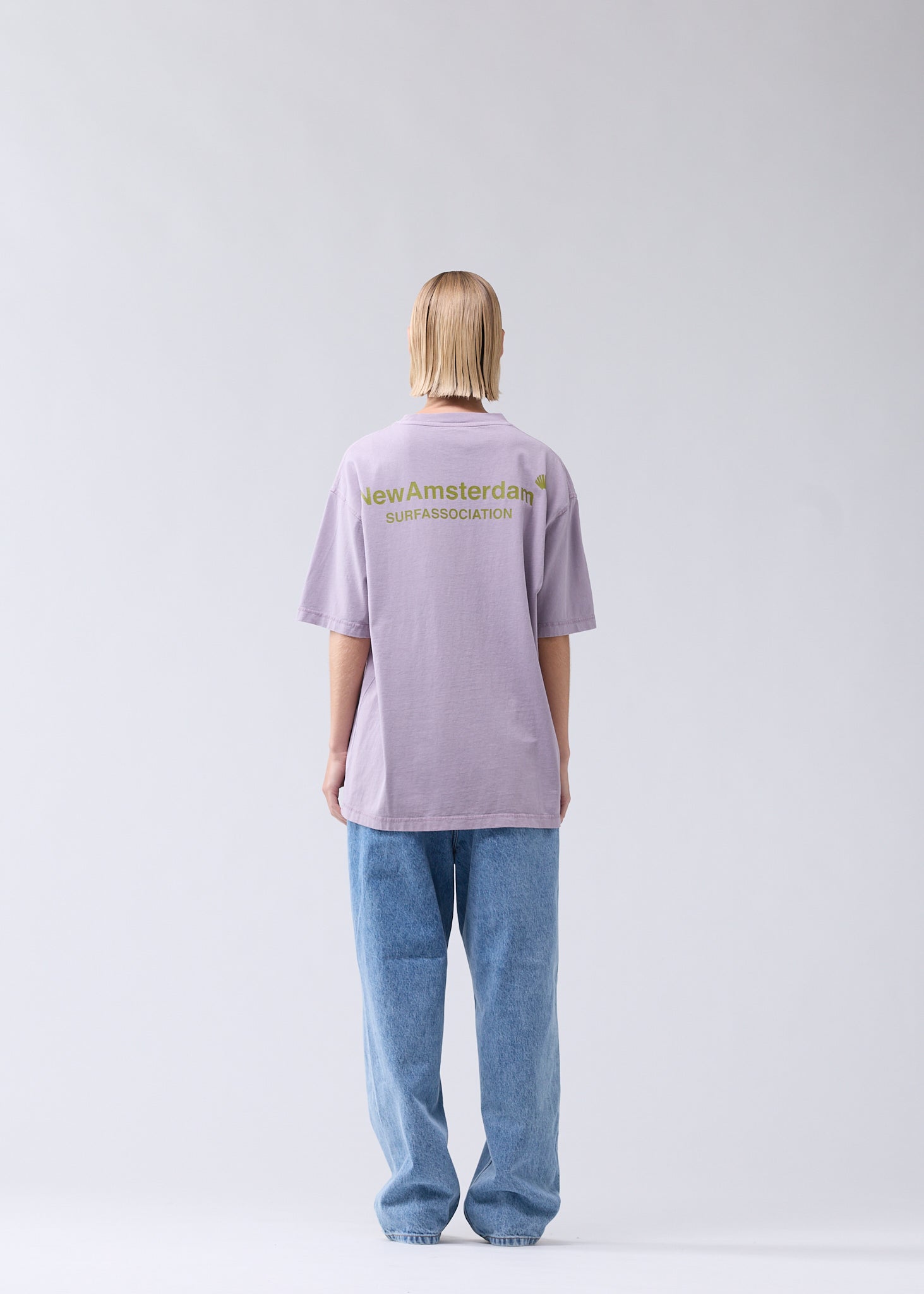 Crew neck t-shirt, cut to a regular unisex fit. Detailed with the New Amsterdam logo and name screen print on front and back. This tee is made of a 240 GSM pigment dyed cotton.
