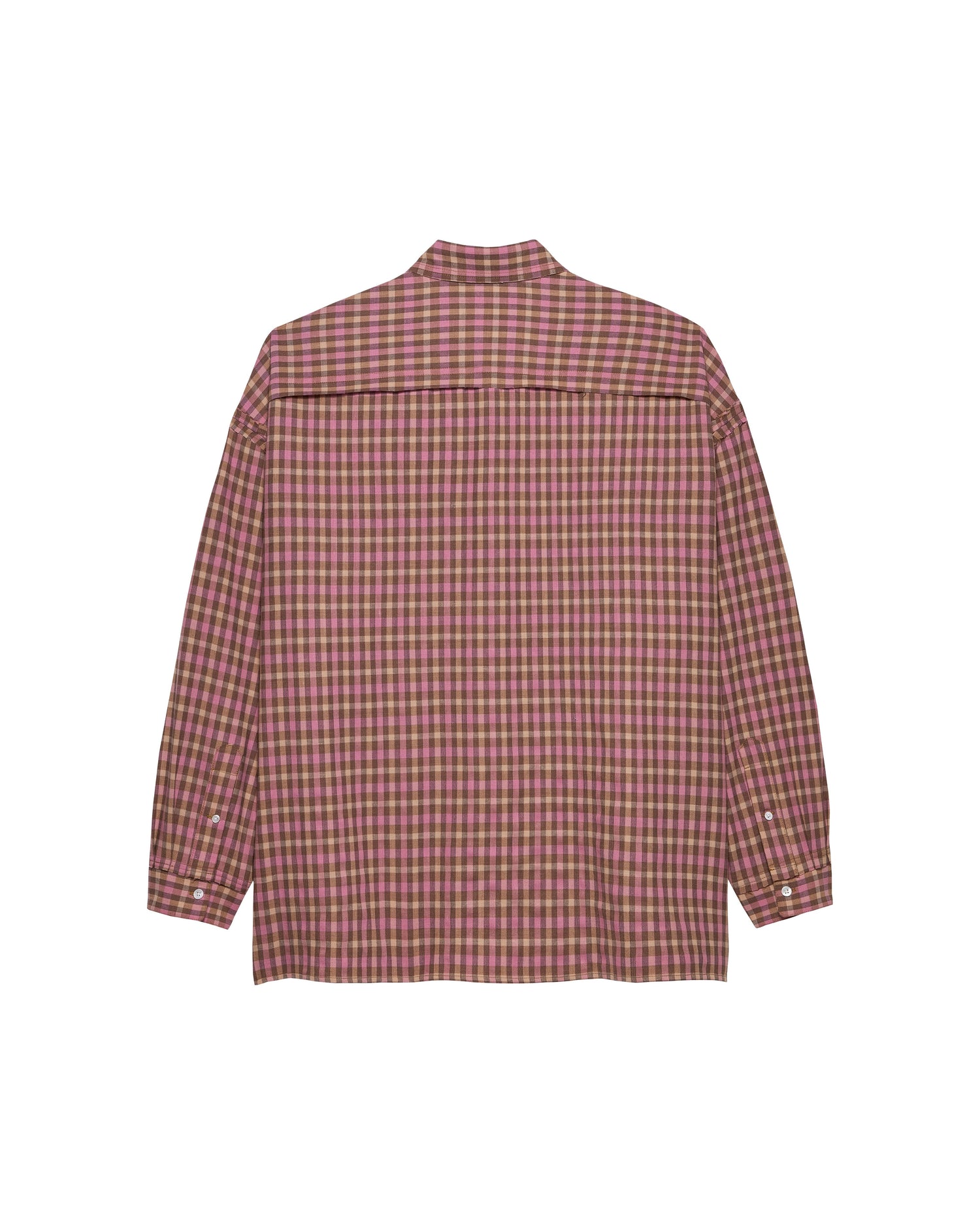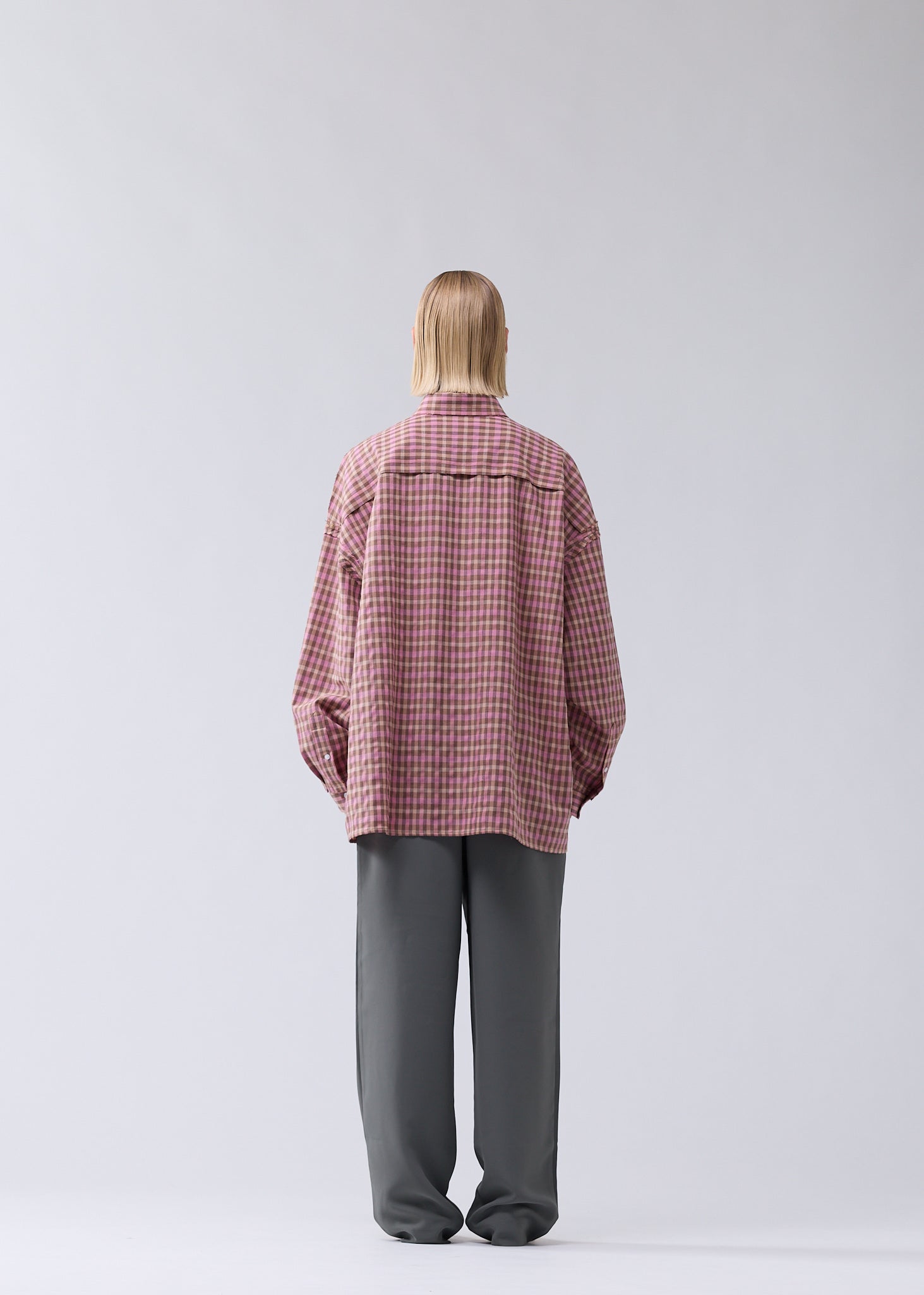 Button-up shirt crafted from a cotton jacquard stripe, designed in a oversized fit that falls below the hip. Features a chest pocket with subtle embroidery detail and is finished with raw edge seams at the shoulder, armhole and cuffs.