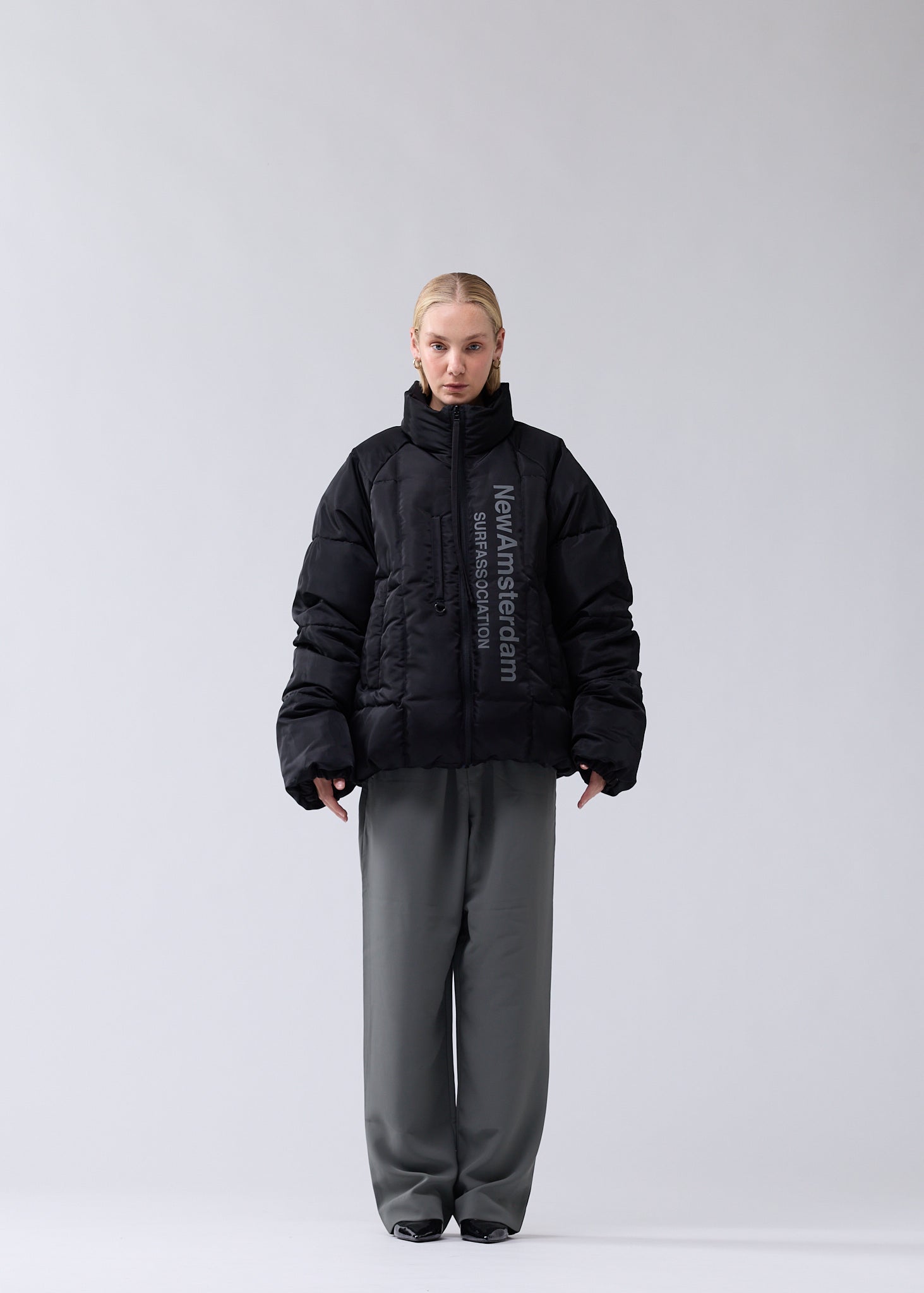 The Reversible Safety Jacket is a reversible unisex puffer jacket made from ripstop with a shiny nylon lining. Filled with Repreve® recycled down, it delivers heavy warmth and comfort. Features include signature embroidery, an inside logo screen print, spiral zip closure, and zip pockets. With its reversible design, this jacket blends function, style, and sustainability in one statement piece.