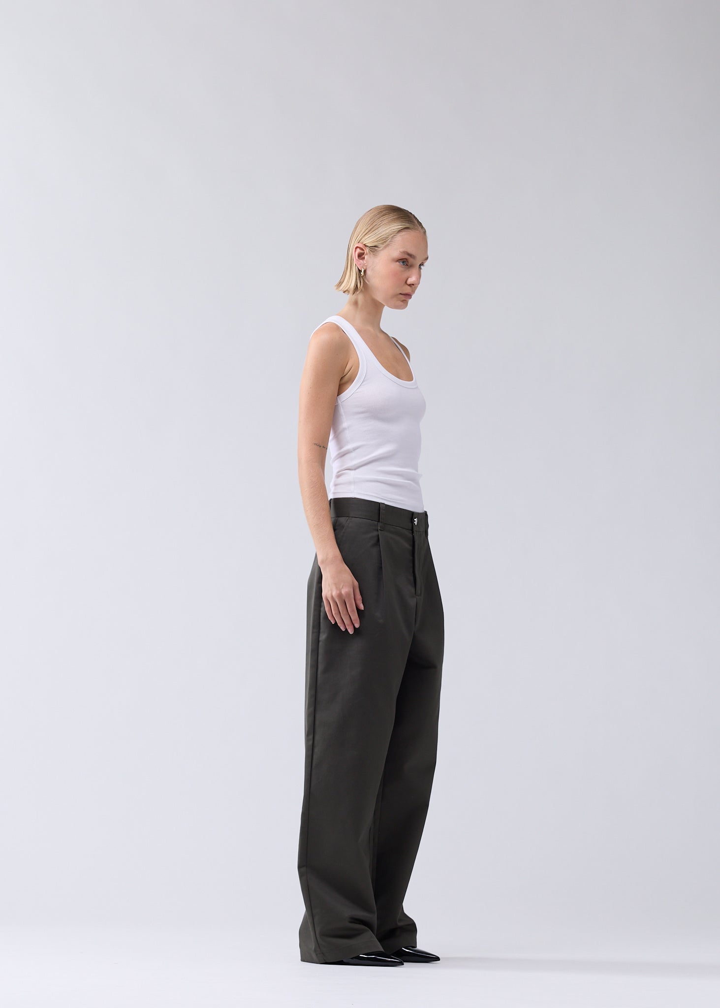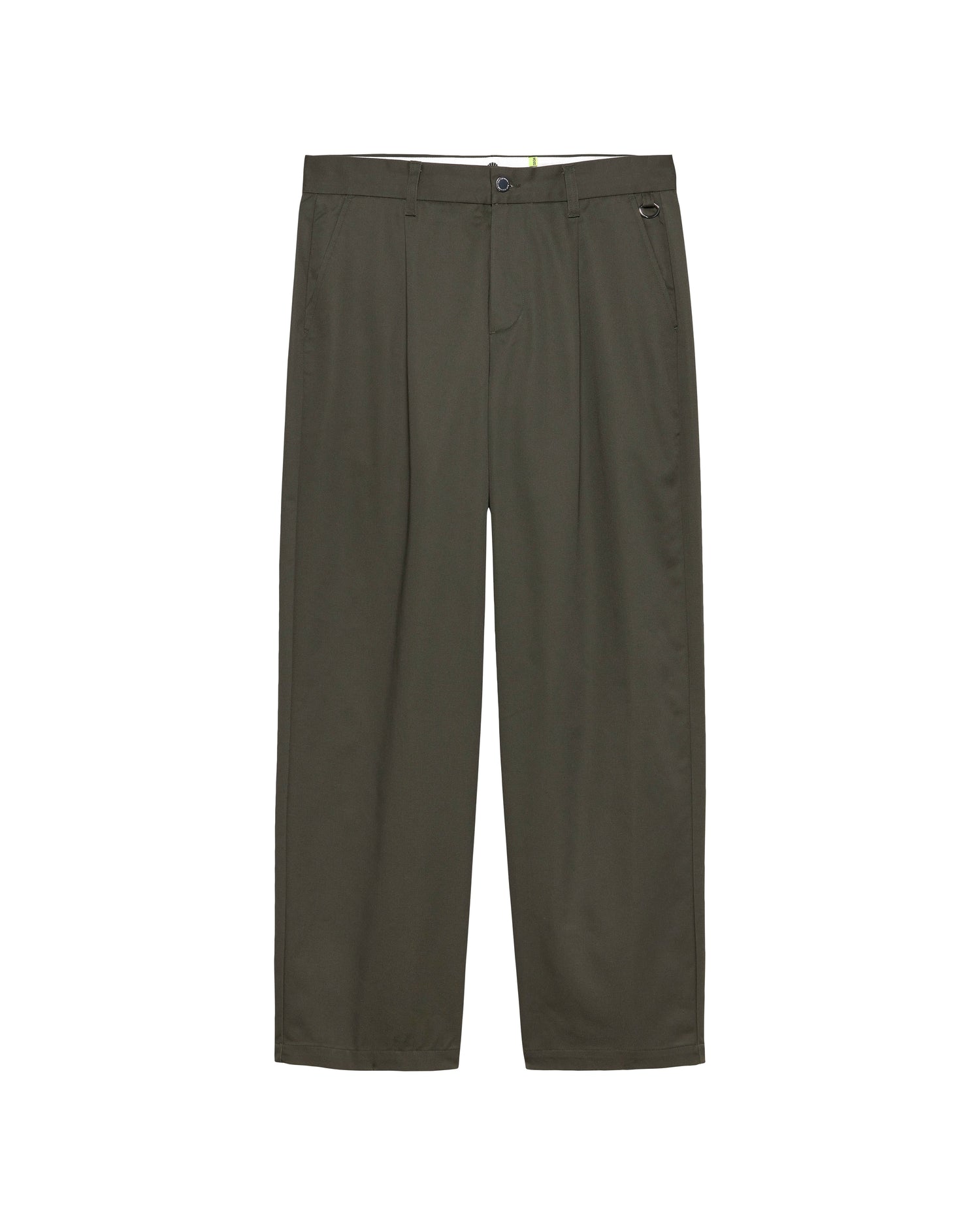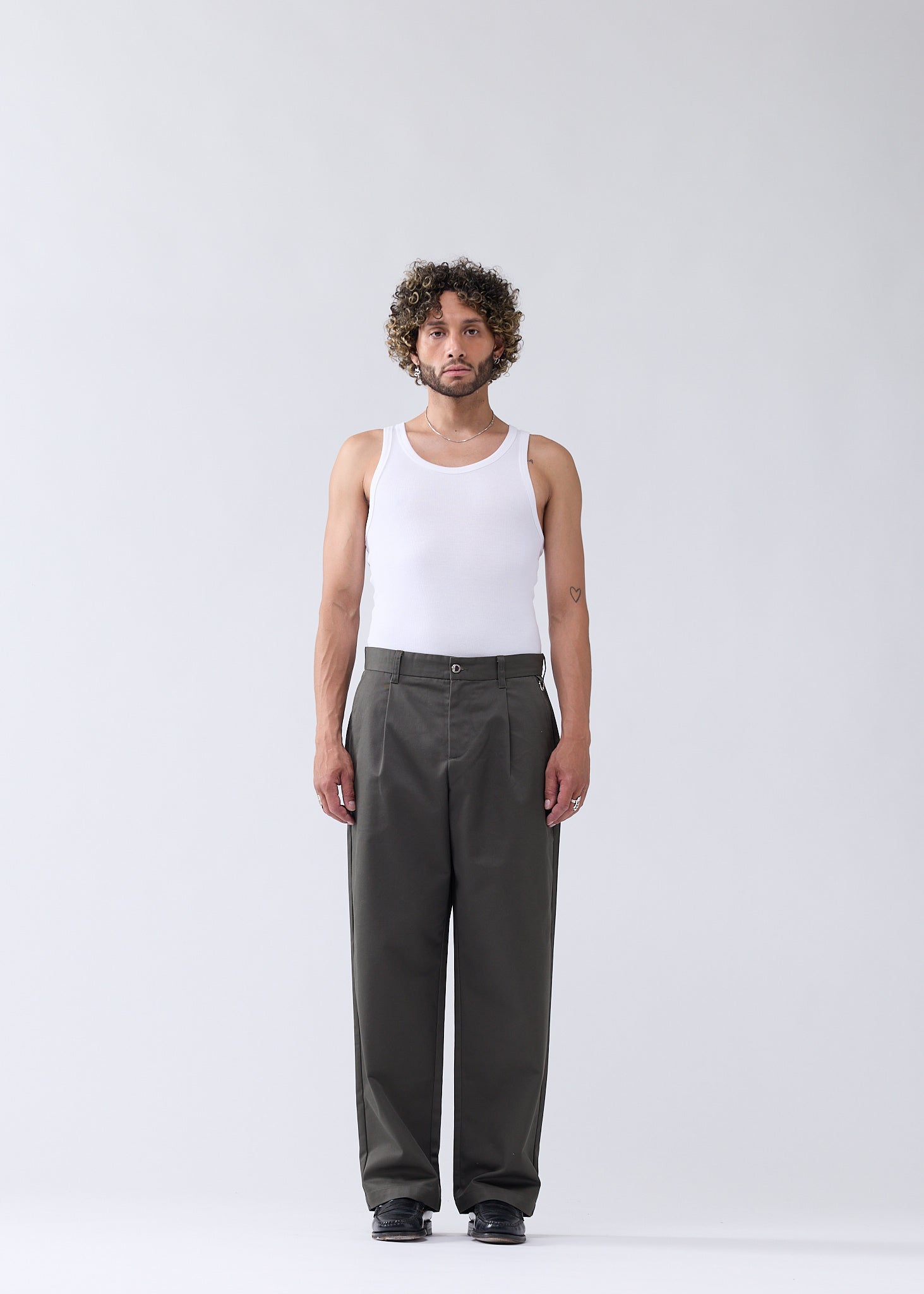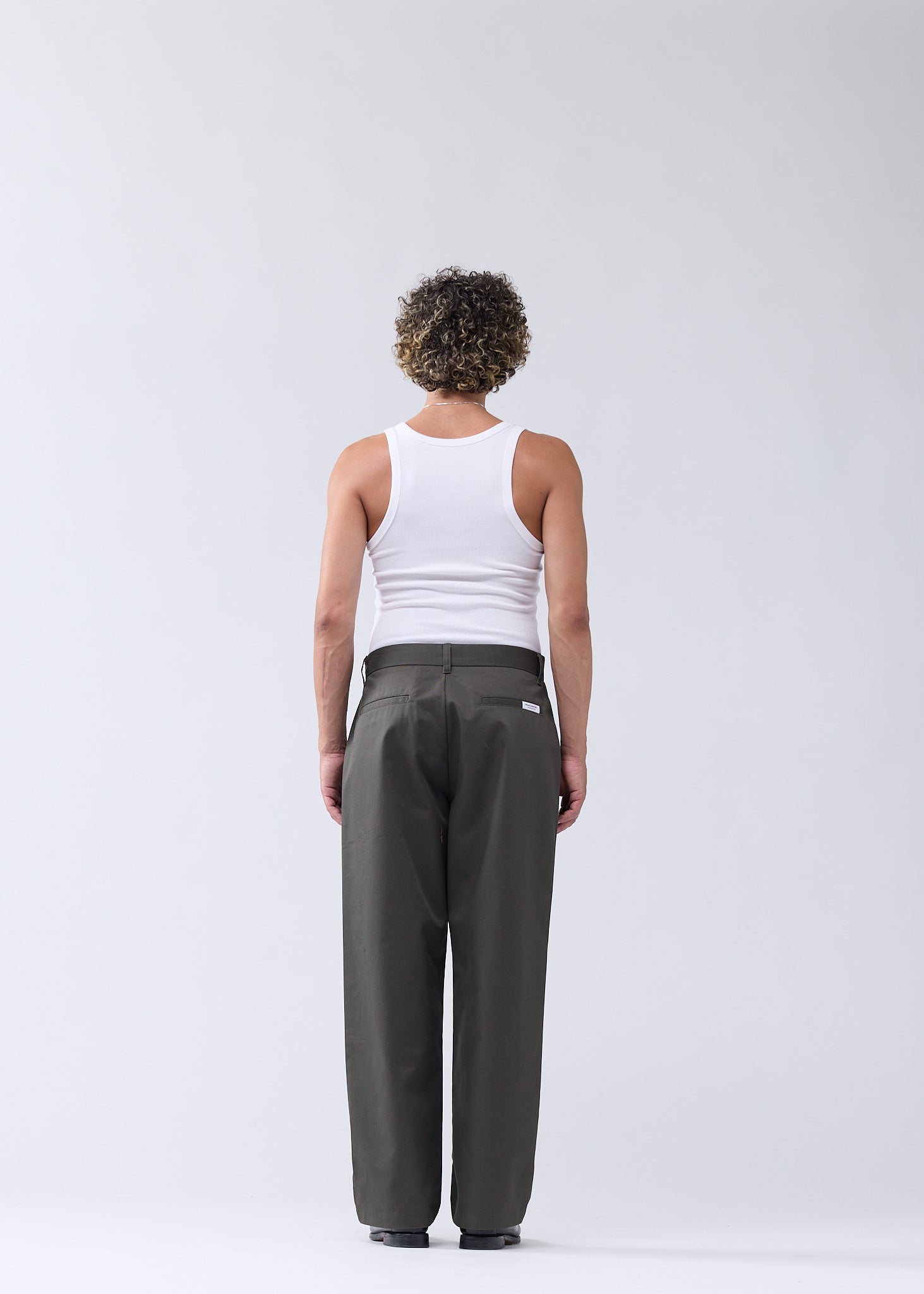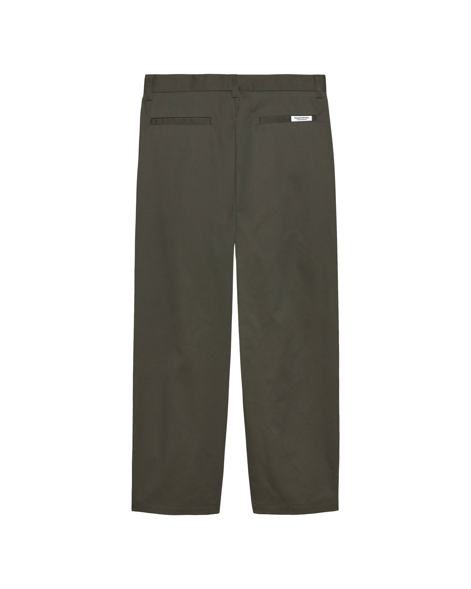 Workwear trouser cut to a relaxed fit with a mid waist and a straight leg, available in two lengths. Detailed with a metal branded button and D-ring, front pleats, New Amsterdam woven label and branded inner waistband.