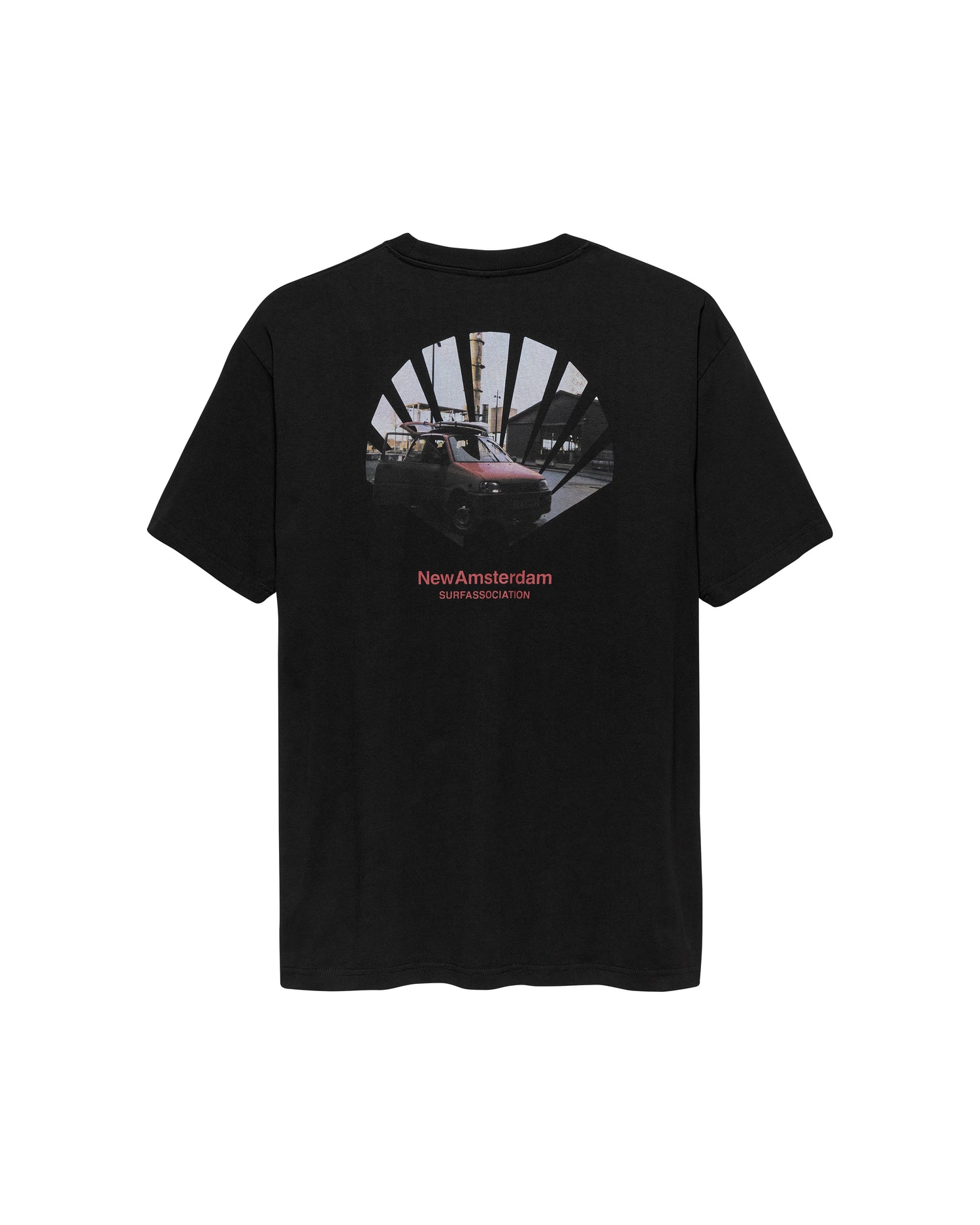 Crew neck t-shirt, cut to a relaxed unisex fit. Detailed with a road trip photo print artwork on the back. This tee is made out of 220 GSM cotton.