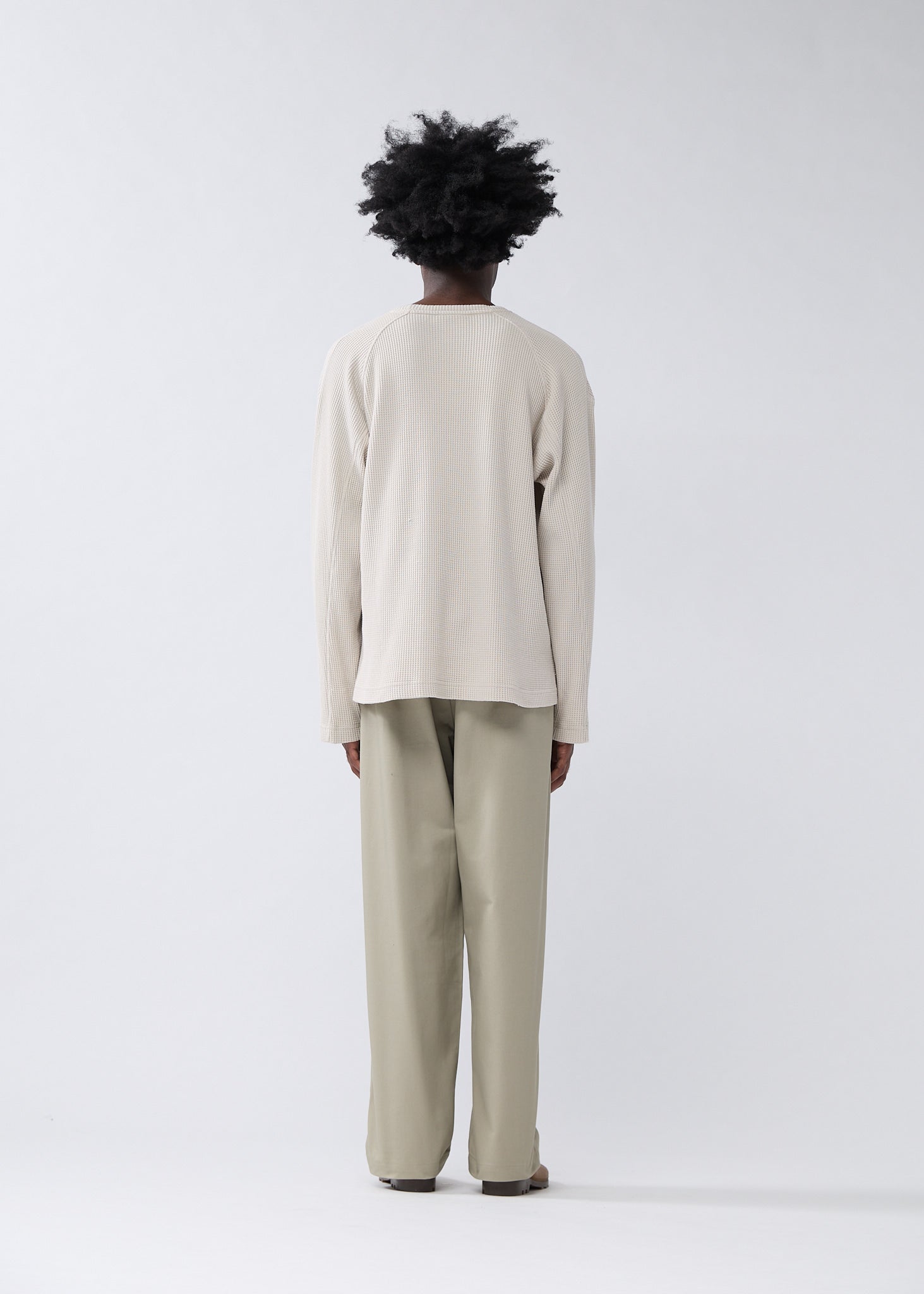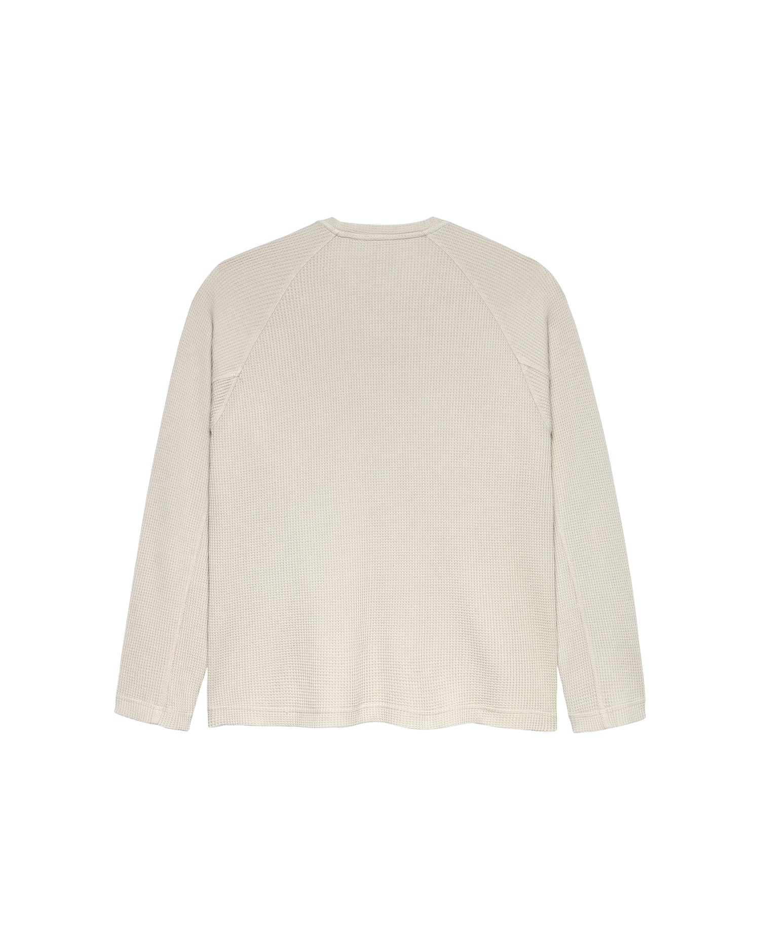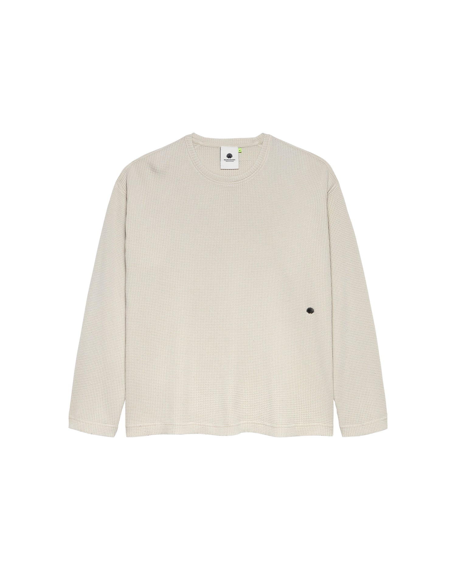 Crew neck longsleeve features a metal shell rivet, crafted from a midweight waffle jersey. Cut to a relaxed unisex fit.