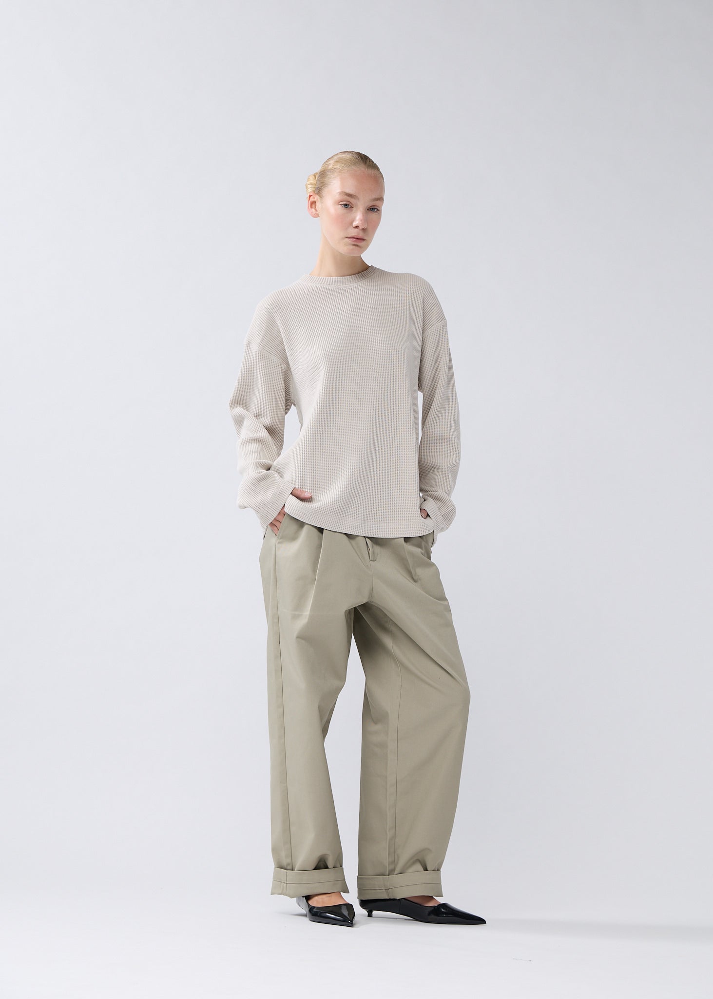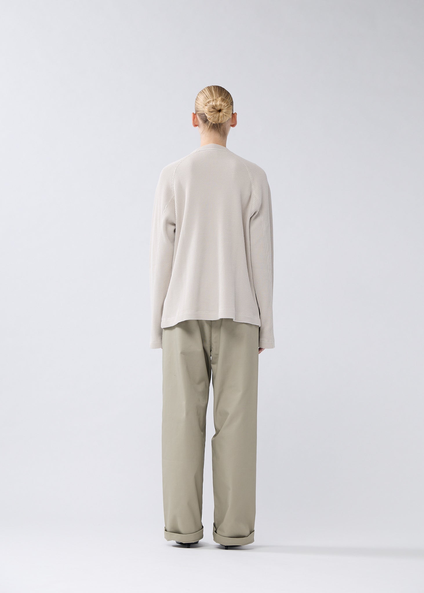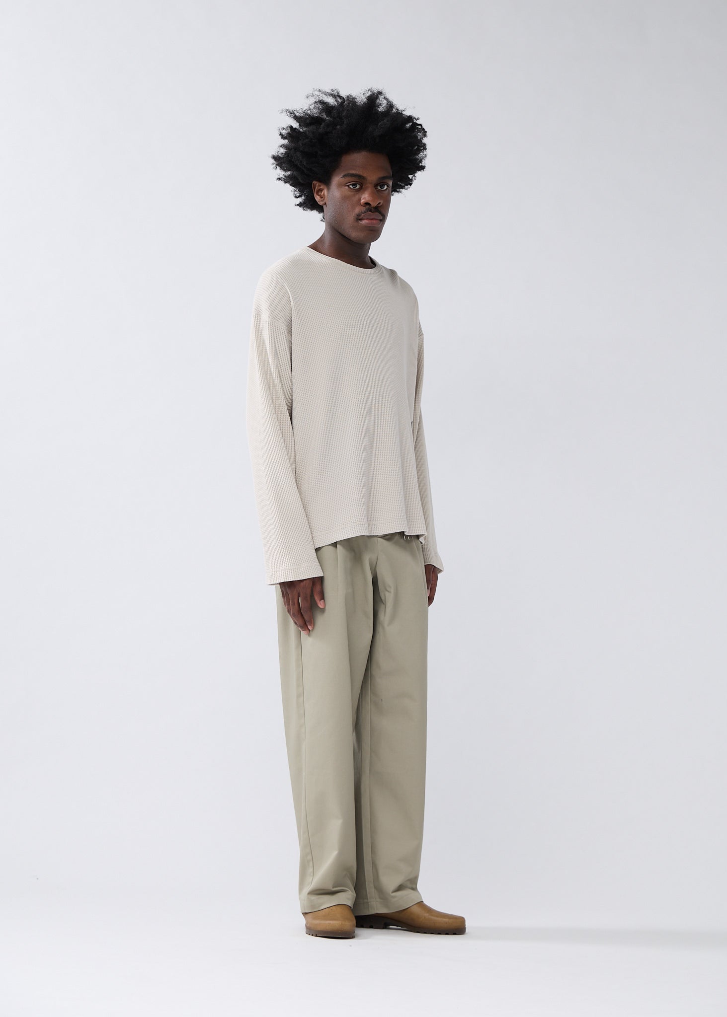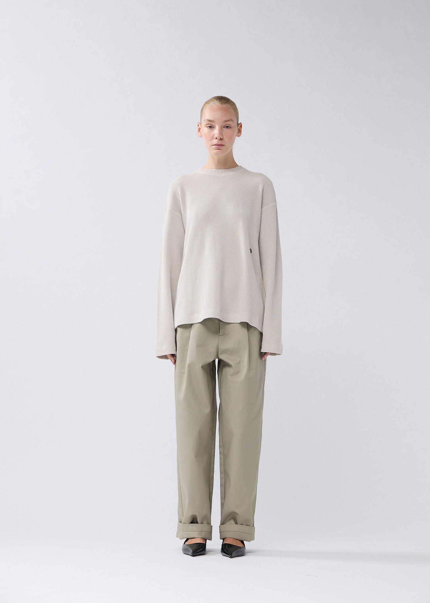 Crew neck longsleeve features a metal shell rivet, crafted from a midweight waffle jersey. Cut to a relaxed unisex fit.